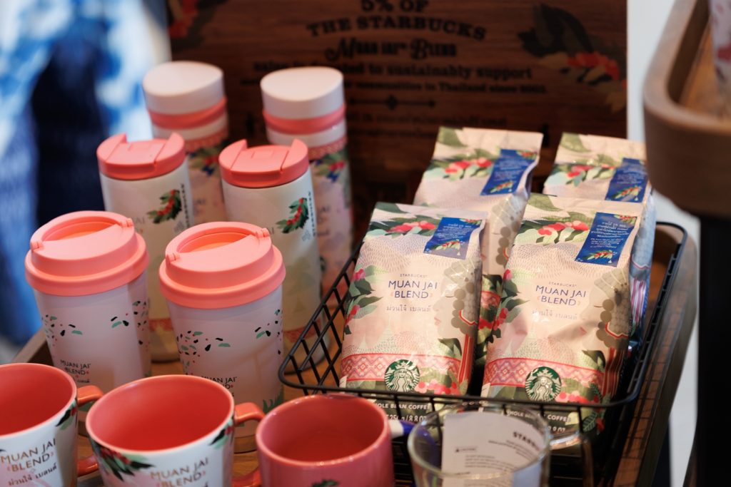 สำหรับเครื่องดื่มสตาร์บัคส์ทุกแก้วที่ซื้อที่ร้านสาขานี้ สตาร์บัคส์จะบริจาคเงิน 10 บาทแก่มูลนิธิพัฒนาชาวเขาแบบผสมผสาน เพื่อพัฒนาคุณภาพชีวิตของชาวไร่กาแฟในภาคเหนือของประเทศไทย นอกจากนี้ยังมีเมนูเครื่องดื่มสุดเอ็กซ์คลูซีฟ เฉพาะสาขานี้กับ ม่วนใจ๋ ไวท์ ช็อกโกแลต อัฟโฟกาโต-สไตล์ แฟรบปูชิโน่ (Muan JaiTM White Chocolate Affogato-Style Frappuccino® Blended Beverage) และสินค้าคอลเลกชันพิเศษ อาทิ แก้วเบญจรงค์ ดริ้งแวร์ พวงกุญแจ กระเป๋า และที่รองแก้วที่มีส่วนประกอบของกากกาแฟ คอลเลกชันนี้ได้รับแรงบันดาลใจจากต้นกาแฟและชุมชนชาวไร่กาแฟทางภาคเหนือของประเทศไทย โดดเด่นด้วยดีไซน์ที่สดใส โดยจะวางจำหน่ายที่ร้านสาขานี้เป็นที่แรก