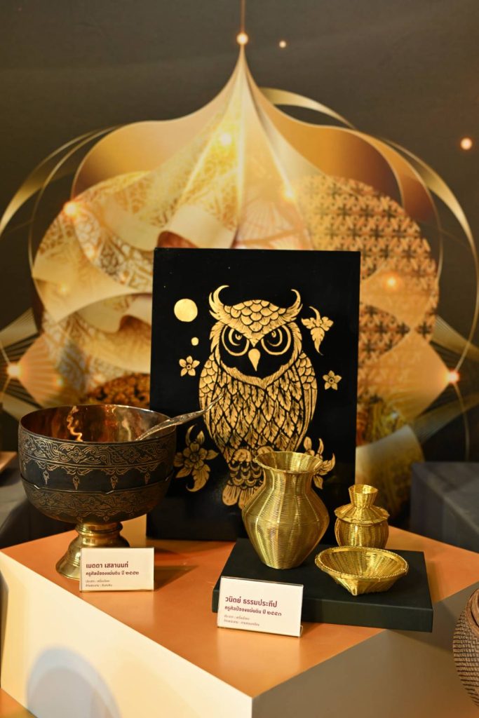 นิทรรศการส่วนไฮไลท์ “หัตถศิลป์ที่คิดถึง” ผลงานหัตถศิลป์ล้ำค่าของครูศิลป์ของแผ่นดิน ครูช่างศิลปหัตถกรรมไทย ผู้ล่วงลับกว่า 50 ผลงาน ซึ่งเป็นงานศิลปหัตถกรรมอันทรงคุณค่า ทั้งที่หาชมได้ยากและใกล้สูญหาย เนื่องจากเหลือช่างทำน้อยราย ที่นับวันจะลดลง อนาคตอาจเหลือเพียงตำนาน อาทิ ขันลงหิน-บ้านบุ ครูเมตตา เสลานนท์ ครูศิลป์ของแผ่นดิน ปี 2552, มีดเหล็กลาย ครูพชร พงศกรรังศิลป์ ครูศิลป์ของแผ่นดิน ปี 2559, หัตถกรรมทองเหลืองสาน ครูวนิตย์ ธรรมประทีป ครูศิลป์ของแผ่นดิน ปี 2553 เป็นต้น รวมถึงสาธิตกระบวนการสร้างสรรค์ผลงานหัตถกรรมชิ้นเอก ถ่ายทอดเทคนิค กระบวนการกว่าจะมาเป็นงานหัตถกรรม โดยครูศิลป์ของแผ่นดิน ครูช่างศิลปหัตถกรรม และทายาทช่างศิลปหัตถกรรม กว่า 25 ราย อาทิ เครื่องประดับมุกโบราณ, งานต้องลายปานซอย (งานฉลุลายโลหะแบบศิลปะไทใหญ่), ลายรดน้ำ, เครื่องเขิน, พวงมะโหตร, แกะสลักไม้, ว่าวเบอร์ฮามัส ฯลฯ และนิทรรศการ “ตำนานบทใหม่ของช่างฝีมือคนไทย” เชิดชูครูศิลป์ของแผ่นดิน ครูช่างศิลปหัตถกรรมไทย และทายาทศิลปหัตถกรรมไทย ประจำปี 2567