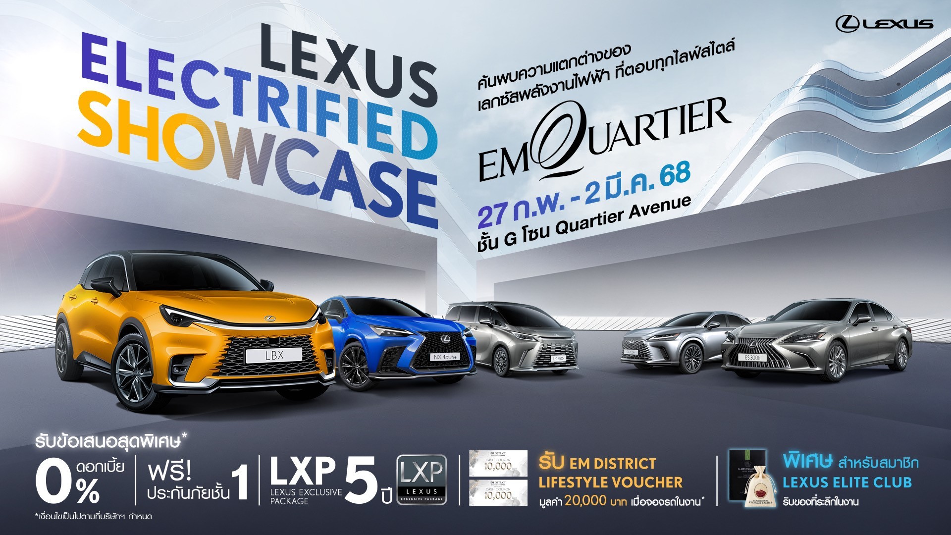 พบกันอีกครั้งกับกิจกรรม LEXUS ELECTRIFIED SHOWCASE โดยครั้งนี้เลกซัสยกขบวนยนตรกรรมหรูหลากหลายรุ่นมาให้คุณได้สัมผัสถึงใจกลางเมืองณ Emquartier โซน Quartier Avenue ชั้น G ตั้งแต่วันที่ 27 กุมภาพันธ์ – 2 มีนาคม 2568
