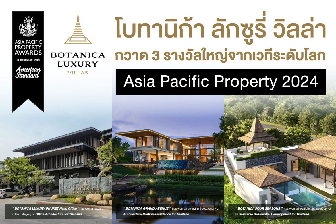 โบทานิก้า ลักซูรี่ วิลล่า (Botanica Luxury Villas) ผู้นำตลาดพูลวิลล่าระดับลักชัวรีในภูเก็ตด้วยประสบการณ์กว่า 20 ปีในการพัฒนาโครงการเหนือระดับที่ตอบโจทย์ทุกไลฟ์สไตล์ของลูกค้า ประกาศความสำเร็จบนเวทีระดับเวิลด์คลาสด้วยการกวาด 3 รางวัลใหญ่จาก Asia Pacific Property Awards 2024 สุดยอดงานประกาศรางวัลอสังหาริมทรัพย์ยอดเยี่ยมในภูมิภาคเอเชียแปซิฟิก ซึ่งเป็นส่วนหนึ่งของ International Property Awards เวทีอันทรงเกียรติที่สุดในแวดวงอสังหาฯ ระดับโลก โดยทั้ง 3 รางวัลถือเป็นเครื่องยืนยันความมุ่งมั่นของ โบทานิก้า ลักซูรี่ วิลล่า ในการพัฒนาโครงการอสังหาฯ มาตรฐานระดับสากล สอดรับกับเทรนด์ยุคใหม่ที่ให้ความสำคัญกับความสุขของผู้อยู่อาศัย ควบคู่ไปกับการใส่ใจชุมชนและสิ่งแวดล้อมอย่างรอบด้าน