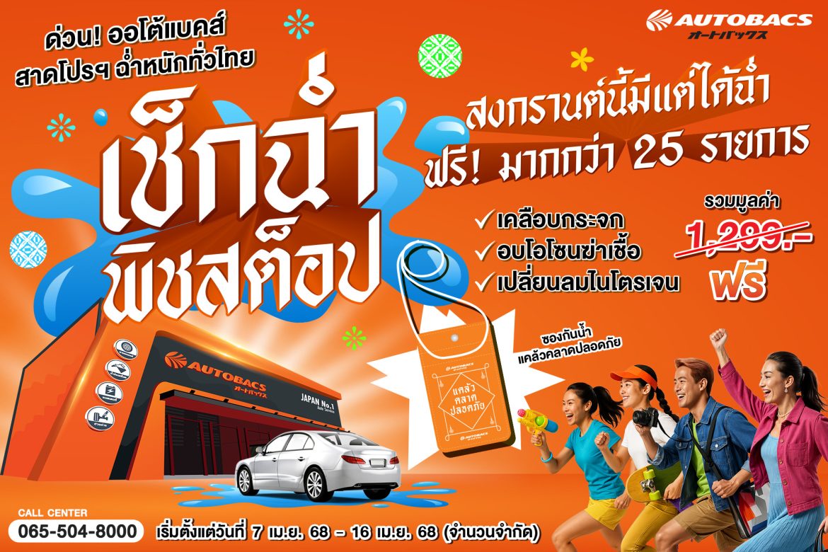 ออโต้แบคส์ ประเทศไทย (Autobacs Thailand) ศูนย์บริการบำรุงรักษารถยนต์ครบวงจร ในกลุ่มบริษัท พีทีจี เอ็นเนอยี จำกัด (มหาชน) หรือ PTG จัดโปรโมชั่นตลอดเทศกาลสงกรานต์ด้วยแคมเปญ “เช็กฉ่ำ พิชสต็อป” บริการตรวจเช็กรถฟรี มากกว่า 25 รายการ พร้อมรับของที่ระลึกสุดพิเศษ ตั้งแต่วันนี้ – 16 เมษายน 2568
