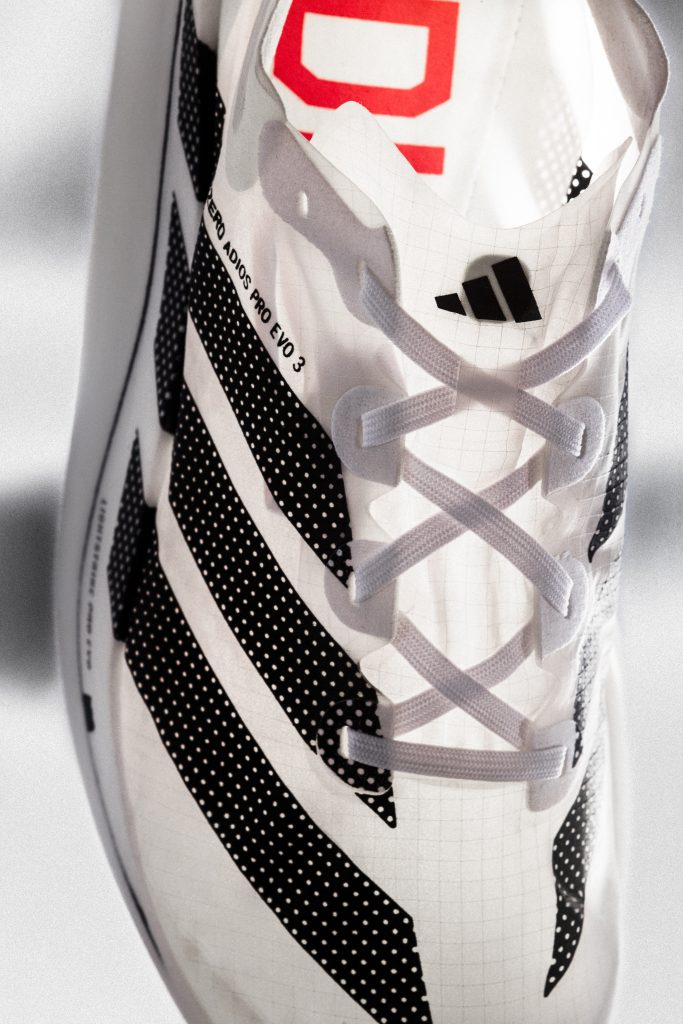 - Adizero Adios Pro Evo 3 คือ รองเท้าวิ่งสำหรับทำความเร็วในการแข่งขันโดยเฉพาะ ผ่านการวิจัยที่ใช้เวลานานกว่า 3 ปี โดยมีน้ำหนักเบากว่ารุ่นก่อนถึง 30% และยังช่วยประหยัดพลังงานในการวิ่ง (Running economy) ได้ถึง 1.6% จึงเป็นรองเท้าวิ่งที่พร้อมสร้างสถิติใหม่โดยทันที