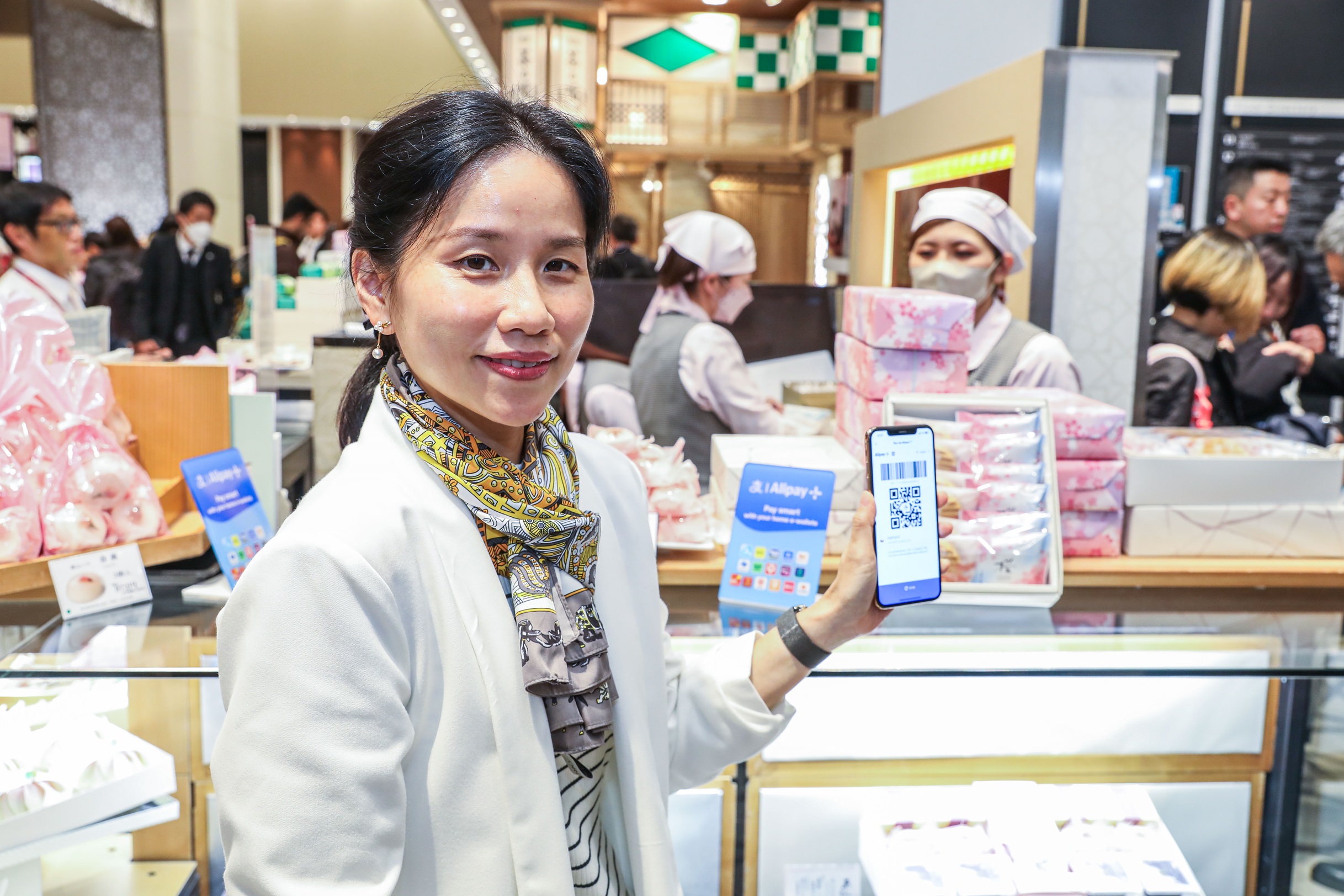 ที่ห้างสรรพสินค้า ไดมารู มัตสึซาคายะ ซึ่งเป็นเครือห้างสรรพสินค้าชั้นนำในญี่ปุ่น ปริมาณธุรกรรมบนอีวอลเล็ต และแอปธนาคารพันธมิตรอาลีเพย์พลัส เพิ่มขึ้นกว่า 10 เท่า ในช่วงสองเดือนแรกของปีนี้ เมื่อเทียบกับช่วงเดียวกันในปีที่แล้ว