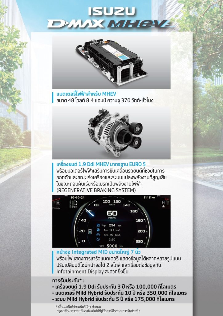 อีซูซุส่งรถปิกอัพ “Isuzu D-Max MHEV” ทางเลือกใหม่…เพื่อโลกที่ดีขึ้น กับเทคโนโลยี Mild Hybrid ตอบสนองการขับขี่ที่ดีขึ้น ทั้งด้านการออกตัว การประหยัดน้ำมัน และเป็นมิตร กับสิ่งแวดล้อม ด้วยเครื่องยนต์ 1.9 ดีดีไอ บลูเพาเวอร์ รุ่น “Isuzu D-Max Hi-lander 1.9 Ddi MHEV” เกรด M เกียร์อัตโนมัติ สีขาวมุก โดโลไมท์ ราคา 1,145,000 บาท เริ่มจำหน่ายวันที่ 20 พฤศจิกายน 2567 พร้อมสานต่อ “นโยบายความเป็นกลางทางคาร์บอนในระดับโลกและระดับประเทศ” ผ่าน “โซลูชั่นส์อันหลากหลายสู่ความเป็นกลางทางคาร์บอน” (Multi-pathways to Carbon Neutrality)
