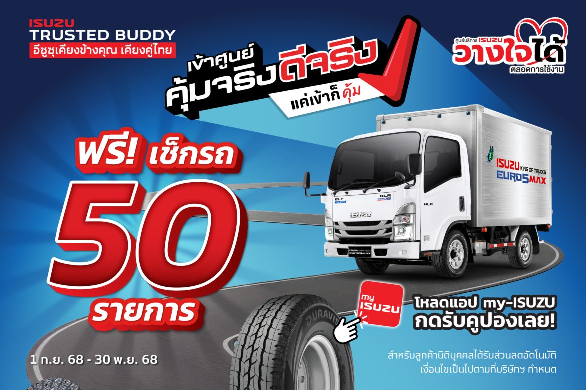 อีซูซุเชิญชวนลูกค้า “เข้าศูนย์ คุ้มจริง ดีจริง” พร้อมรับความคุ้ม! สุดประหยัด ดูแลครบจบในแอปเดียว