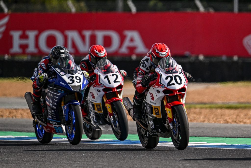 “ฮอนด้า เรซซิ่ง ไทยแลนด์” ประสบความสำเร็จ ส่ง “อุ้ม” นพรุธพงษ์ บุญประเวศ หมายเลข 20 ลุยบิด Honda CBR250RR ใน เอเชีย โปรดักชั่น 250 (AP250) ในเรซที่ 2 สตาร์ตกริดที่ 5 ไล่บี้คู่แข่งแบบไม่มียั้ง สามารถคว้าโพเดียมอันดับ ที่ 2 มาครองได้อย่างสุดมันส์ ในฐานะนักแข่งไวลด์การ์ดที่ลงแข่งขันรายการนี้เป็นครั้งแรกในฤดูกาล สร้างปรากฏการณ์จัดหนักทำดับเบิ้ลโพเดียม 2 เรซติดต่อกัน แบบไร้ข้อกังหา พร้อมทีมเมท “เฟอร์” ปัญจรุจน์ จิตวิรุฬห์ฉัตร หมายเลข 12 สตาร์ตกริดที่ 21 เข้าเส้นชัยในอันดับที่ 5 แซงเดือดนักแข่งระดับหัวกระทิของเอเชีย ตอกย้ำสายเลือดนักแข่งตัวจริงของทีมฮอนด้าอย่างเต็มภาคภูมิ!