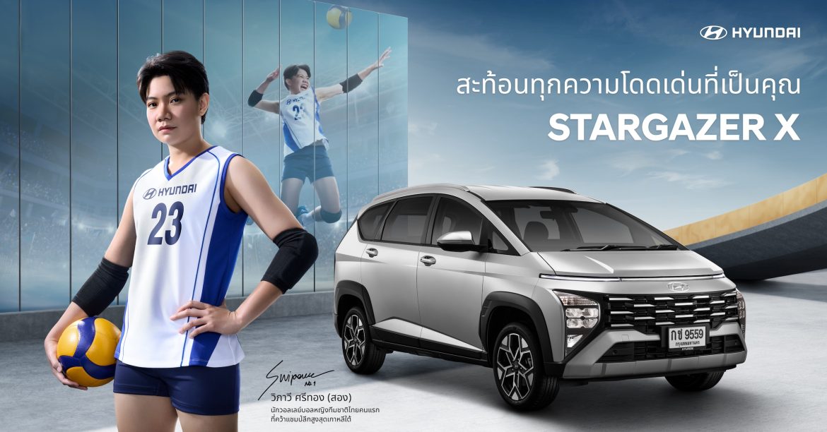 บริษัท ฮุนได โมบิลิตี้ (ประเทศไทย) จำกัด เปิดตัวโฆษณาชุดใหม่ พร้อมเขย่าวงการกีฬาและโลกยานยนต์ภายใต้แคมเปญ ‘Star Meets Star’ คว้านักตบลูกยางสาวดาวรุ่งชาวไทย สอง-วิภาวี ศรีทอง ดีกรีนักวอลเลย์บอลไทยคนแรก ที่คว้าแชมป์วอลเลย์บอลลีกให้กับทีม “ฮุนได ฮิลล์สเตรท” แห่งเกาหลีใต้ มาถ่ายทอดเรื่องราวบนเส้นทางสู่ฝัน ที่ต้องฝ่าฝันอุปสรรคมากมาย เสมือนความสำเร็จของฮุนได สตาร์เกเซอร์ ที่เกิดจากความมุ่งมั่นพัฒนามาอย่างยาวนาน จนกลายเป็นยานยนต์ที่สมบูรณ์แบบในกลุ่ม Mini MPV ทั้งในด้านความสะดวกสบายของห้องโดยสาร และสมรรถนะการขับขี่ ทั้ง สอง-วิภาวี และ สตาร์เกเซอร์ คือตัวแทนของจิตวิญญาณแห่งความสำเร็จ การเติบโต และแรงบันดาลใจ ที่จะมาถ่ายทอดพลังแห่งความมุ่งมั่น ให้ผู้ชมกล้าที่จะเอาชนะทุกอุปสรรค์สู่ความยิ่งใหญ่ และเฉิดฉายในเส้นทางของตนเอง