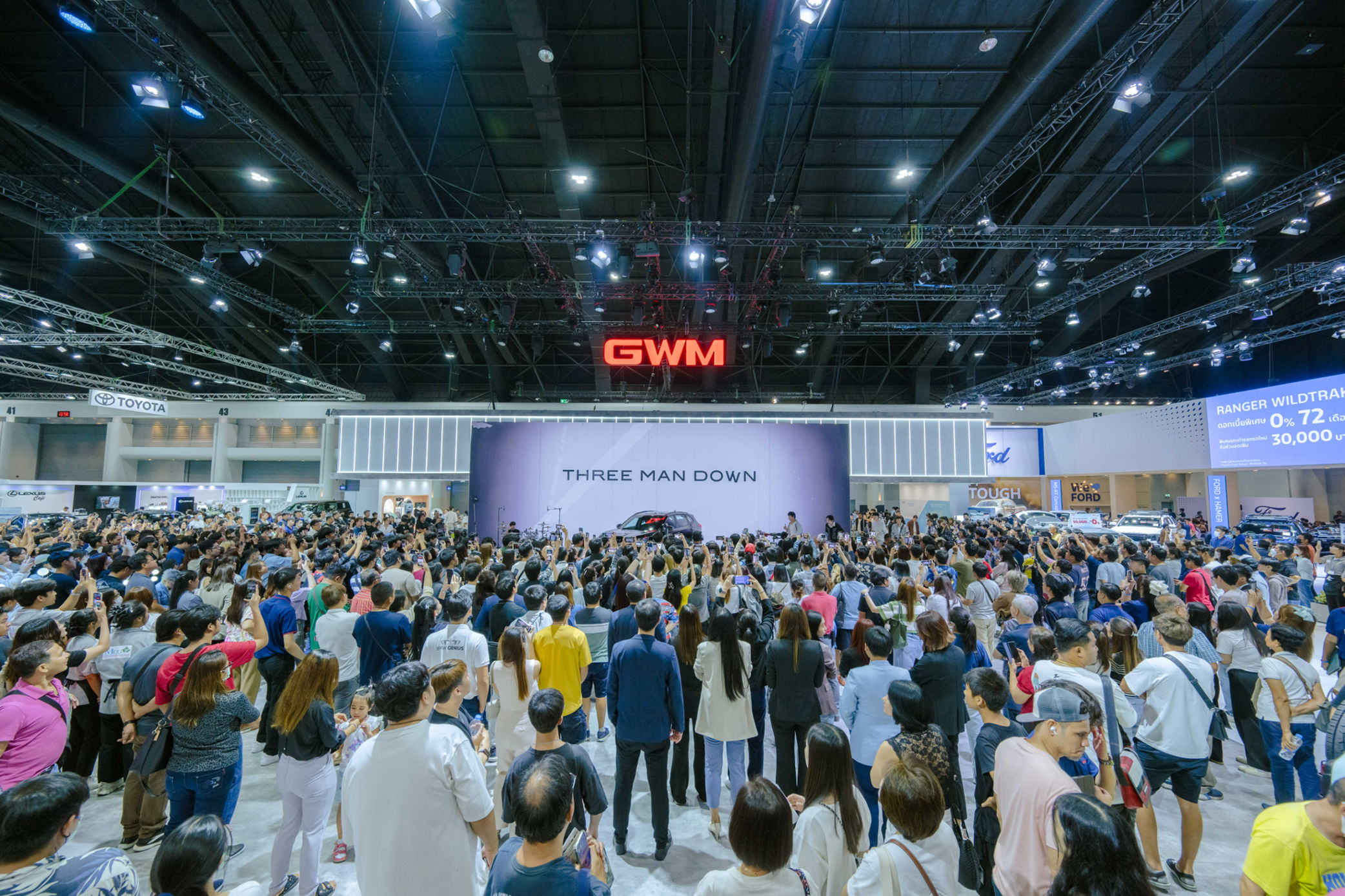 เกรท วอลล์ มอเตอร์ (ประเทศไทย) ขอบคุณผู้บริโภคสำหรับกระแสตอบรับอย่างท่วมท้นจากการเผยโฉมรถกระบะไฮบริดรุ่นแรกในไทย “GWM POER SAHAR HEV” พร้อมกับการเปิดตัว “Three Man Down” ในฐานะพรีเซนเตอร์ HAVAL JOLION รวมถึงความสนใจต่อขบวนทัพรถยนต์พลังงานไฟฟ้าล้ำสมัย ในงานบางกอก อินเตอร์เนชั่นแนล มอเตอร์โชว์ ครั้งที่ 45 โดยตั้งแต่วันแรกของการจัดงาน เกรท วอลล์ มอเตอร์ ได้ให้การต้อนรับลูกค้าและแฟน ๆ ทั้งชาวไทยและชาวต่างชาติที่หลั่งไหลเข้ามาเยี่ยมชมกองทัพยนตรกรรมล้ำสมัย ลงทะเบียนทดลองขับรถยนต์ไฟฟ้า และร่วมทำกิจกรรมสนุก ๆ ภายในบูธของ เกรท วอลล์ มอเตอร์ อย่างเนืองแน่น ส่งผลให้ตลอดระยะเวลา 2 สัปดาห์ของการจัดงาน เกรท วอลล์ มอเตอร์ สามารถกวาดยอดจองไปได้รวมทั้งสิ้น 2,815 คัน นำทัพโดย ORA Good Cat ที่มียอดจองสูงถึง 652 คัน ตามมาด้วย GWM POER SAHAR HEV 640 คัน และเจ้าสิงโตอารมณ์ดี HAVAL JOLION ที่ยังคงความร้อนแรงกวาดยอดจองไปทั้งสิ้น 577 คัน สำหรับ HAVAL H6 มียอดจองทั้งสิ้น 463 คัน แบ่งเป็น HAVAL H6 HEV 233 คัน และ HAVAL H6 PHEV จำนวน 230 คัน ตามด้วย ORA 07 จำนวน 233 คัน และรถยนต์เอสยูวีออฟโรดระดับพรีเมียม GWM TANK จำนวน 250 คัน และ จากยอดจองดังกล่าว คิดเป็นยอดจองของรถยนต์พลังงานไฟฟ้า 100% (ORA Good Cat และ ORA 07) จำนวน 885 คัน หรือ 31% ของยอดจองรวม และรถยนต์พลังงานไฟฟ้าอื่น ๆ จำนวน 1,930 คัน หรือประมาณ 69% ของยอดจองรวม