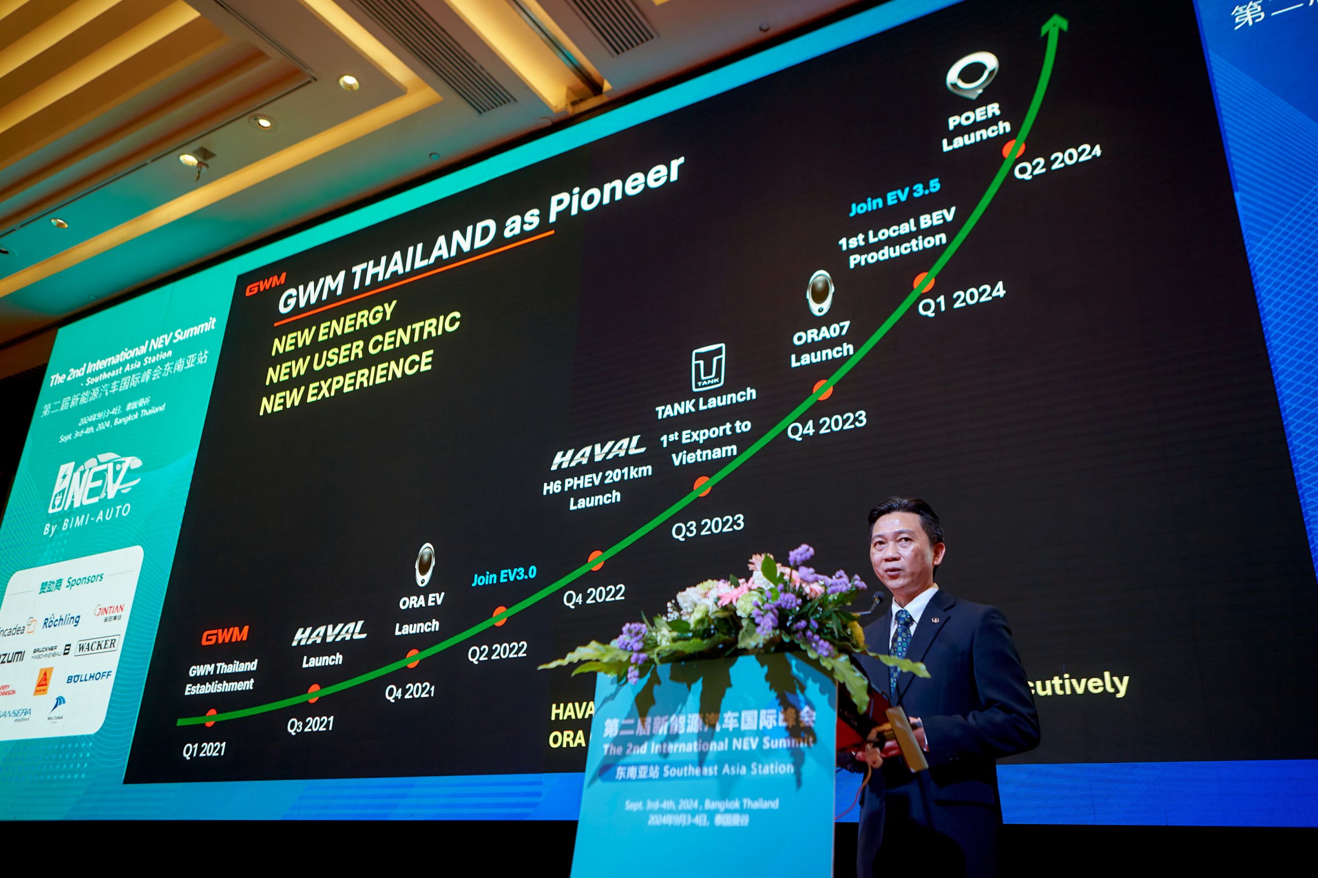 สำหรับ เกรท วอลล์ มอเตอร์ เข้ามาดำเนินธุรกิจในภูมิภาคอาเซียนโดยมีประเทศไทยเป็นศูนย์กลางและเป็นประเทศยุทธศาสตร์ โดยในประเทศไทย เกรท วอลล์ มอเตอร์ พร้อมและเร่งขับเคลื่อนปรับกลยุทธ์ด้วยการสร้างความแตกต่างผ่านการนำเสนอรถยนต์พลังงานใหม่กว่า 10 รุ่น โดยครอบคลุมทุกประเภทเครื่องยนต์ที่หลากหลายและครอบคลุม ทั้งไฮบริด ปลั๊กอิน-ไฮบริด และรถยนต์ไฟฟ้า 100% โดยเฉพาะอย่างยิ่ง กลุ่มรถยนต์ตระกูล HAVAL และ ORA ที่ได้รับความนิยมและความไว้วางใจมาอย่างต่อเนื่อง สอดคล้องกับเทรนด์ความต้องการใช้งานรถยนต์พลังงานใหม่ในกลุ่มนรถยนต์อเนกประสงค์และรถยนต์นั่งส่วนบุคคล รวมถึงเทคโนโลยีที่ล้ำหน้าและนวัตกรรมอัจฉริยะเพื่อการขับขี่ที่ปลอดภัยขั้นสูงสุด การออกแบบที่มีเอกลักษณ์และเพื่ออนาคต งานบริการหลังการขายที่มีคุณภาพและมีประสิทธิภาพครอบคลุมทั่วประเทศ นอกจากนี้ เกรท วอลล์ มอเตอร์ ยังเร่งเดินหน้าผลักดันให้ประเทศไทยมีระบบนิเวศรถยนต์พลังงานใหม่ที่สมบูรณ์แบบมากยิ่งขึ้น ตั้งแต่การตั้งโรงงานอัจฉริยะแห่งแรกในอาเซียนเมื่อปี พ.ศ. 2564 ที่จังหวัดระยอง รวมถึงการนำพันธมิตรทางธุรกิจในอุตสาหกรรมเกี่ยวเนื่องเข้ามาลงทุนในประเทศไทย ไม่ว่าจะเป็น โรงงานผลิตแบตเตอรี่ SVOLT, HYCET, NOBO, MIND, และ Exquisite สะท้อนให้เห็นถึงความมุ่งมั่นผลักดันให้ประเทศไทยเป็นฐานการผลิตของการผลิตยานยนต์พลังงานใหม่แบบครบวงจรตั้งแต่ต้นน้ำจนถึงปลายน้ำ เพื่อก้าวขึ้นสู่การเป็นผู้นำในภูมิภาคนี้อีกด้วย