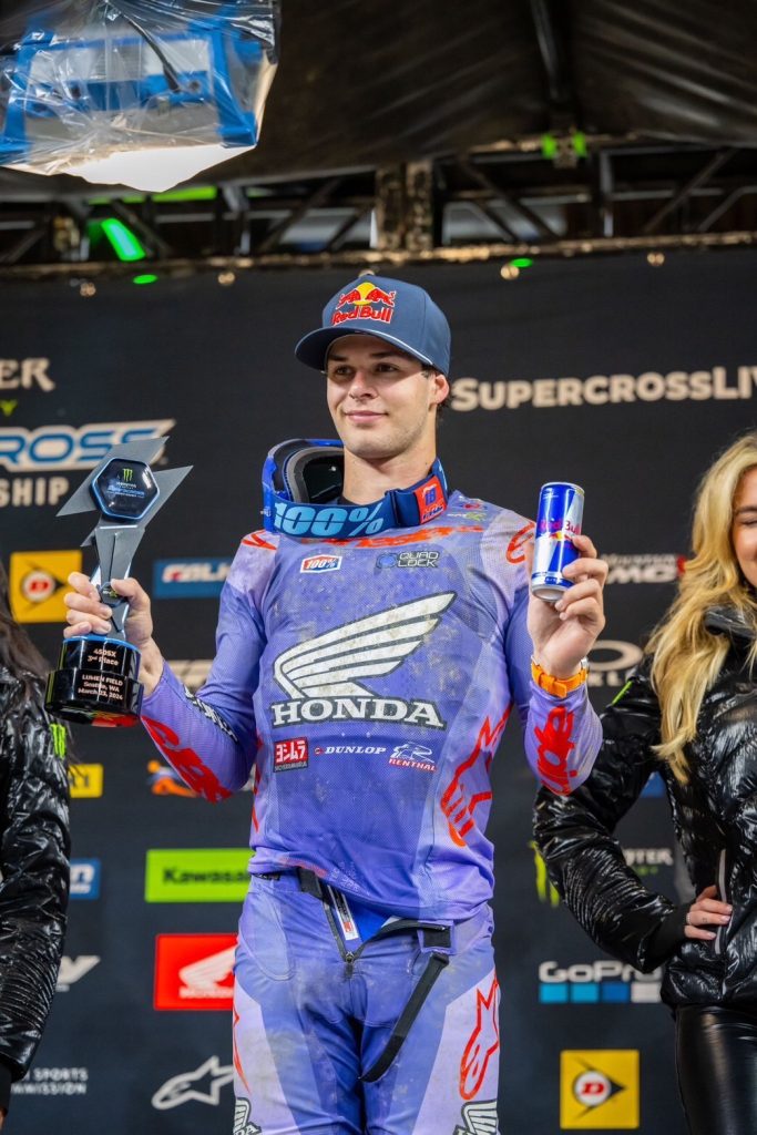 “เจ็ตต์ ลอว์เรนซ์” รุกกี้พรีเมียร์คลาส จาก Team Honda HRC บิดสุดยอดรถแข่งทางฝุ่น Honda CRF450R คว้าโพเดียมอันดับที่ 3 มาครองพร้อมรั้งจ่าฝูงตารางคะแนนสะสมต่อเนื่อง ขณะที่ “ฮันเตอร์ ลอว์เรนซ์” คว้าท็อป 7 ในการแข่งขันรายการสุดหิน AMA Supercross 2024 สนามที่ 11 ที่ซีแอตเทิล ประเทศสหรัฐอเมริกา เมื่อวันที่ 23 มีนาคม ที่ผ่านมา