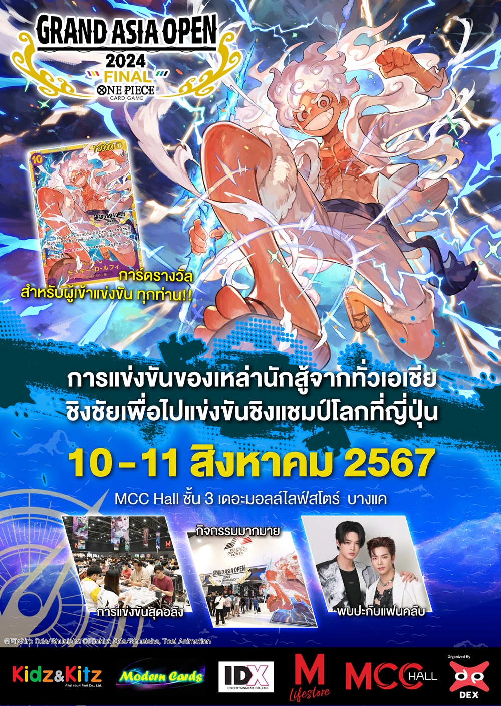 แฟนๆ One Piece และ Card Game Players ทั้งหลาย เตรียมตัวและเตรียมใจ ร่วมลุ้นระทึกครั้งใหญ่ กับการแข่งขัน “วันพีซการ์ดเกม” สุดยิ่งใหญ่แห่งปี กับงาน “One Piece Card Game Grand Asia Open 2024 Finals” การแข่งชิงแชมป์เอเชีย สู่รอบ Championship 2024 World Final โดยงานนี้ บริษัท คิดซ์ แอนด์ คิทซ์ จำกัด ผู้แทนจำหน่ายและผลิต Card Game ลิขสิทธิ์แท้จากญี่ปุ่น พร้อมด้วย บริษัท บันได จำกัด (ประเทศญี่ปุ่น) ร่วมกันจัดขึ้น เพื่อเป็นการเฟ้นหาตัวแทนนักแข่ง One Piece Card Game ในระดับเอเชีย เพื่อเตรียมแข่งขันชิงแชมป์โลกรอบสุดท้าย ซึ่งมีตัวแทนจากทวีปเอเชีย ประกอบด้วย ไต้หวัน, ไทย, ฟิลิปปินส์, มาเลเซีย, สิงคโปร์, อินโดนิเซีย, และฮ่องกง เข้าร่วมการชิงชัยในครั้งนี้ ภายใต้ชื่องาน “One Piece Card Game Grand Asia Open 2024 Finals” ซึ่งมีกำหนดจัดขึ้น ระหว่างวันที่ 10 – 11 สิงหาคม 2567 เดอะมอลล์ไลฟ์สโตร์ บางแค