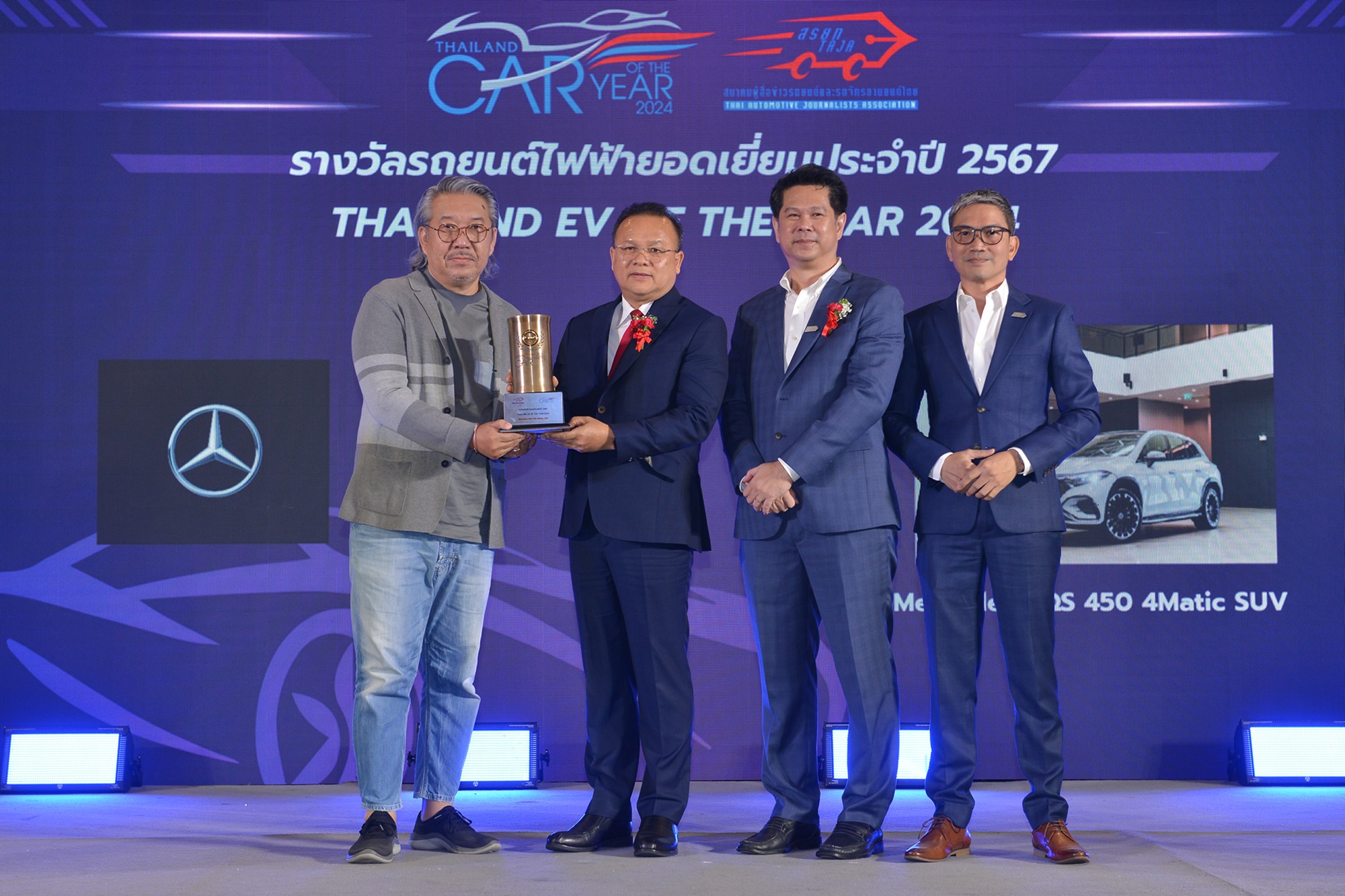 เมอร์เซเดส-เบนซ์ ประเทศไทย คว้า 2 รางวัล จากโครงการรางวัลรถยนต์ยอดเยี่ยมประจำปี (THAILAND CAR OF THE YEAR) ซึ่งจัดขึ้นโดยสมาคมผู้สื่อข่าวรถยนต์และรถจักรยานยนต์ไทย (สรยท.) นำโดยรถยนต์รุ่น “EQS 450 4MATIC SUV AMG Dynamic” ที่ได้รับรางวัล “รถยนต์ไฟฟ้ายอดเยี่ยมประจำปี 2567” (Thailand EV of the Year 2024) และรางวัล “โมเดลการจัดจำหน่ายยอดเยี่ยม” (Best Car Retail Campaign Award) จากการเปิดตัวโมเดลธุรกิจ “Retail of the Future” ที่เข้ามาพลิกโฉมธุรกิจค้าปลีกให้กับตลาดรถยนต์ระดับลักชัวรี่ในประเทศไทย