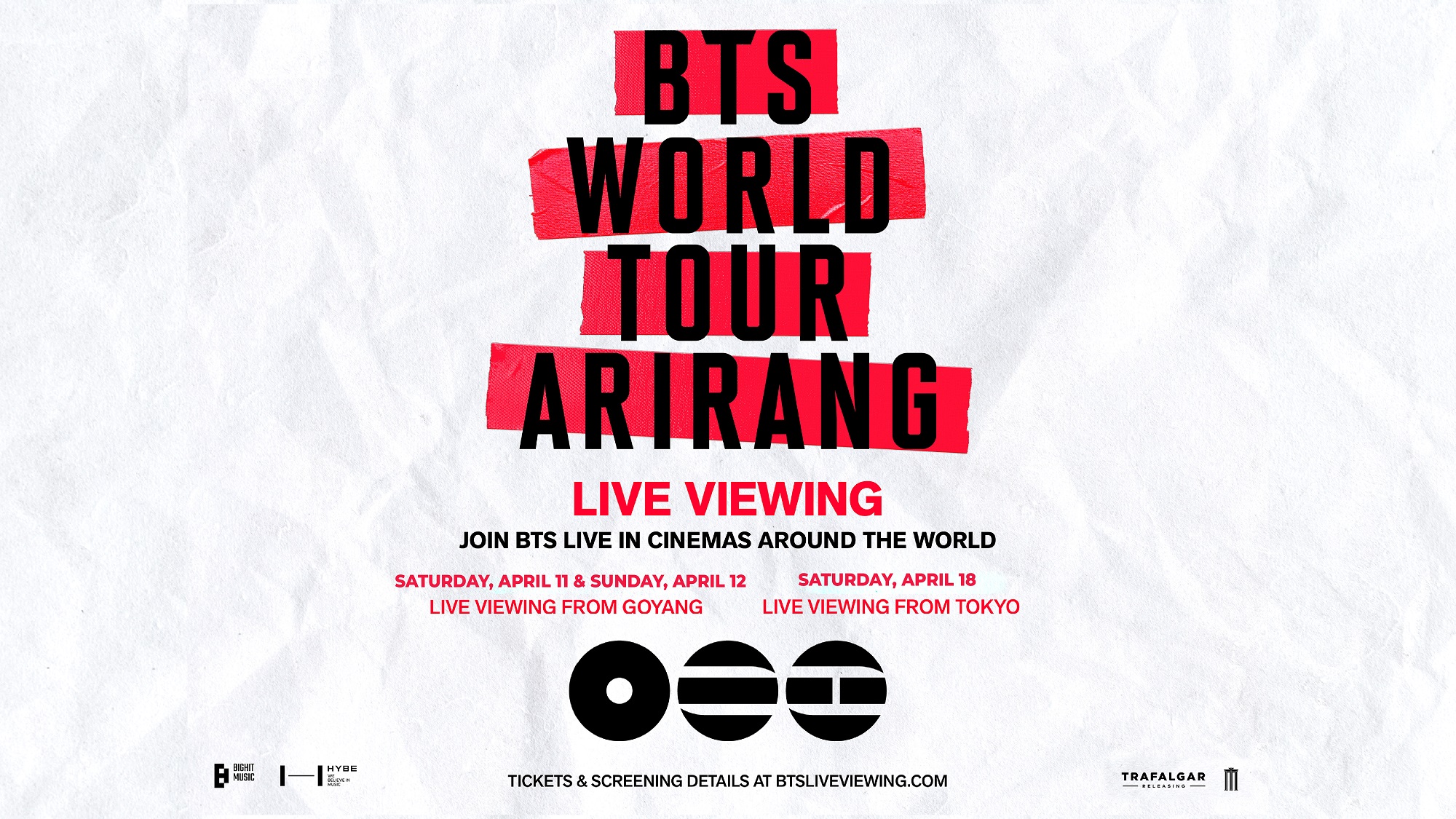 ปิดท้ายกับไฮไลต์สำคัญ BTS WORLD TOUR ‘ARIRANG’ IN GOYANG : LIVE VIEWING การกลับมาของ BTS กับเวิลด์ทัวร์ครั้งแรกในรอบเกือบ 4 ปี นับตั้งแต่ Permission to Dance on Stage เมื่อปี 2021-2022 ที่จัดขึ้นเพื่อสนับสนุนอัลบั้มใหม่ ARIRANG ของ BTS มีการจัดคอนเสิร์ตครอบคลุม 34 เมืองทั่วโลก โดยในแต่ละประเทศจะมีการฉายคอนเสิร์ต 2 รอบ รอบละ 2 ครั้ง เพื่อรองรับเขตเวลาไทม์โซนที่แตกต่างกัน รวมทั้งหมด 82 รอบการแสดง เปิดฉากด้วยคอนเสิร์ตครั้งประวัติศาสตร์ โดยแฟน ๆ ชาวไทยจะได้ชมการถ่ายทอดสดจากเมือง โกยาง ประเทศเกาหลีใต้ ในวันที่ 11 เมษายน 2569 รอบเวลา 16.45 น. บัตรราคาเริ่มต้น 800 บาท และรอบ Encore Concert ในวันที่ 12 เมษายน 2569 รอบเวลา 16.45 น. บัตรราคาเริ่มต้น 700 บาท พร้อมของพรีเมียมทุกที่นั่ง