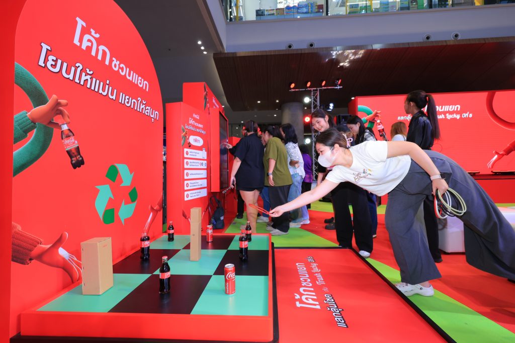 นอกจากนี้ยังมีโซนกิจกรรมให้กับบุคคลทั่วไป เพียงนำขวดพลาสติก “โค้ก” ที่ดื่มหมดแล้วมาร่วมรีไซเคิลและลงทะเบียนเข้าร่วมโครงการ ก็รับสิทธิ์ร่วมเล่นเกมลุ้นรางวัลภายในงานได้ทันที ไม่ว่าจะเป็นเกมเลือกจับคู่วัสดุรีไซเคิลให้ถูกประเภทบนจอดิจิทัล หรือเกมโยนห่วงแยกประเภทวัสดุรีไซเคิล ลุ้นรับของที่ระลึกจากโคคา-โคล่า ซึ่งได้รับความสนใจจากเหล่าแฟนคลับรุ่นใหม่อย่างล้นหลาม