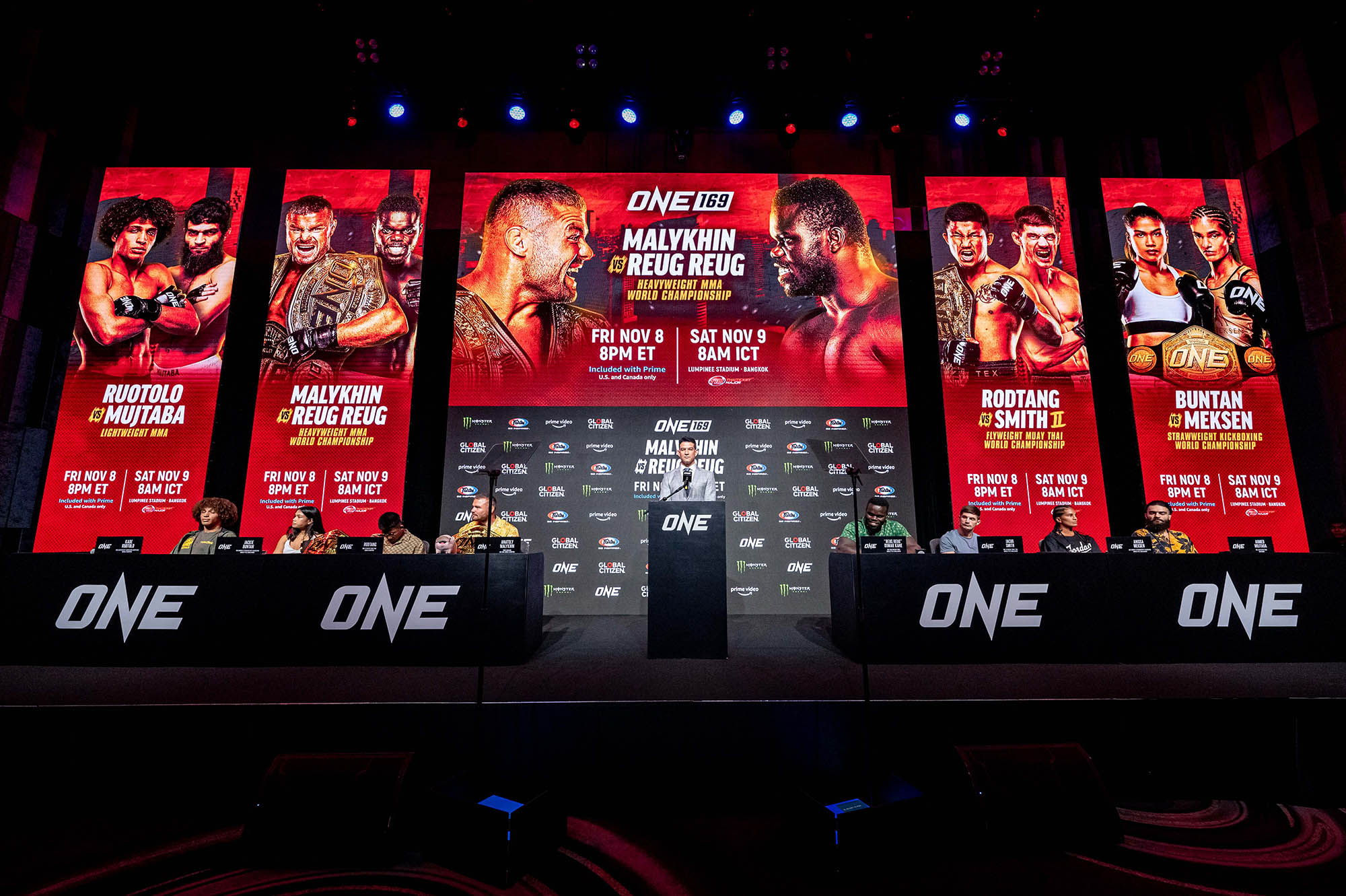 เดิมที ONE วางแผนที่จะกลับไปจัดการแข่งขันที่สหรัฐอเมริกาเป็นครั้งที่ 3 ในศึก ONE 169 ณ สังเวียนสเตต ฟาร์ม อารีนา เมืองแอตแลนตา ในวันเสาร์ที่ 9 พ.ย.นี้ แต่ด้วยเหตุผลเรื่องข้อผูกพันที่มีต่อพันธมิตรในประเทศไทย จึงได้มีการประกาศเปลี่ยนแปลงสนามแข่งขันมาจัดที่ สนามมวยเวทีลุมพินี (รามอินทรา)ซึ่งถือเป็นการมอบของขวัญชิ้นใหญ่ส่งท้ายปีให้กับแฟนชาวไทย ได้มาชมและเชียร์คู่มวยระดับโลกกันแบบสด ๆ ถึงขอบสนามในวันเสาร์ที่ 9 พ.ย.นี้ ซึ่งมีไฟต์ชิงแชมป์โลกให้ดูกันอย่างจุใจถึง 3 คู่ นำทัพโดยสองแชมป์โลก ONE อย่าง “อนาโตลี” และ “รถถัง” ที่เตรียมขึ้นป้องกันเข็มขัดสุดหวง ส่วน “แจ็กกี-อนิสสา” เตรียมเปิดศึกชิงบัลลังก์ราชินีคิกบ็อกซิ่งหญิง รุ่นสตรอว์เวต คนแรกในประวัติศาสตร์