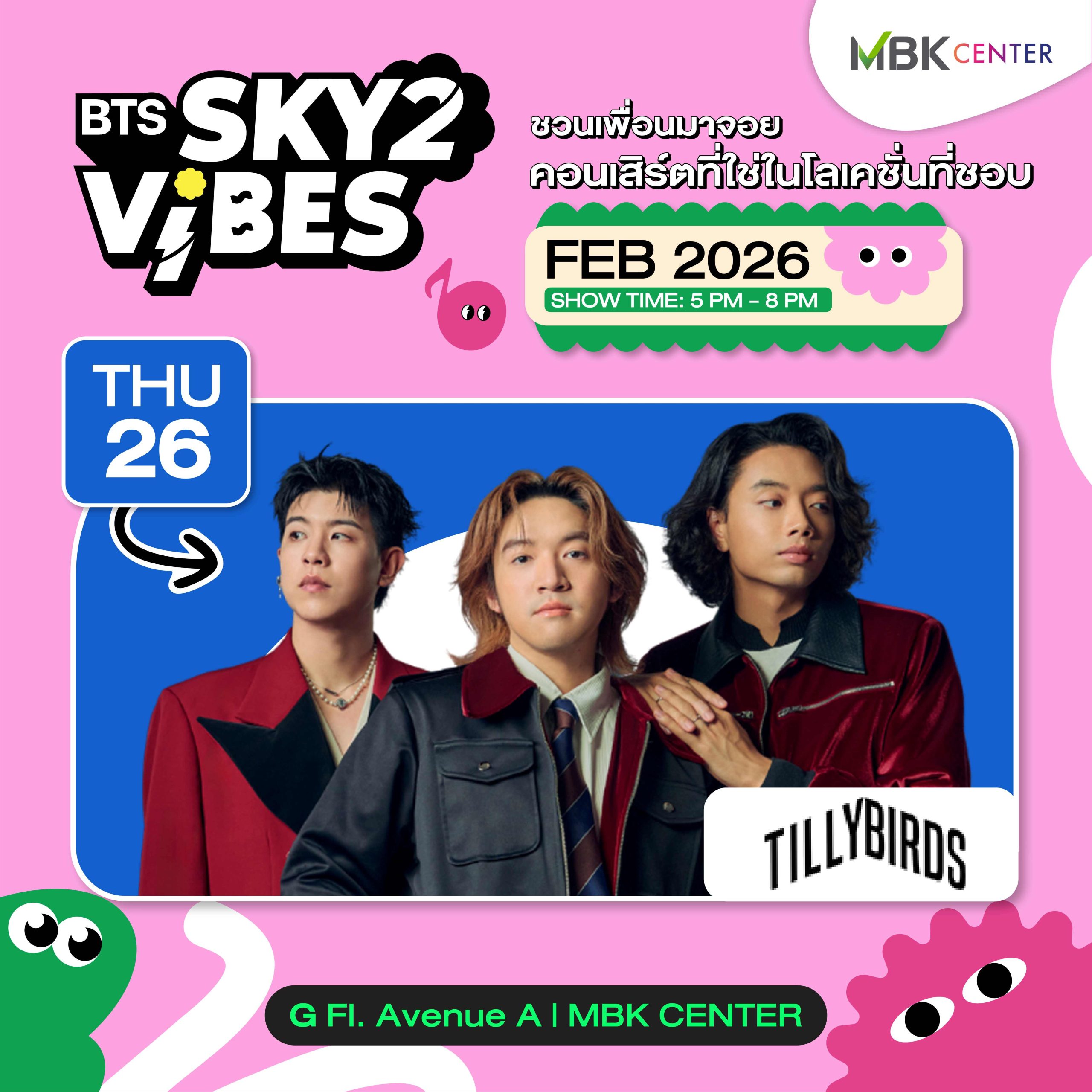ต่อเนื่องความมันส์ส่งท้ายเดือนกุมภาพันธ์ ศูนย์การค้าเอ็ม บี เค เซ็นเตอร์ ชวนสายแดนซ์มาร่วมร้องร่วมเต้นสนุกกันใน ฟรีคอนเสิร์ต BTS SKY VIBES 2 โดยGMM MUSIC ร่วมกับ VGI & Plan ปล่อยจอยกับคอนเสิร์ตที่ใช่ในโลเคชันที่ชอบ กับเหล่าศิลปินสุดฮอต จัดเต็ม 3 วัน ในวันอังคารที่ 24 กุมภาพันธ์ พบกับ The White Hair Cut, วันพฤหัสบดีที่ 26 กุมภาพันธ์ พบกับ TILLYBIRDS และวันศุกร์ที่ 27 กุมภาพันธ์ 2569 พบกับวงร็อคfreehand พร้อมกิจกรรมพิเศษอีกมากมาย อาทิRandom Dance Stage, Student Stage, BLKGEM x GMM Trainee Show, Sponsor Booth & Lucky Draw เป็นต้น ตั้งแต่ 17.00 น. – 20.00 น. บริเวณชั้น G ลานกิจกรรมเอ็ม บี เค อเวนิว โซน A
