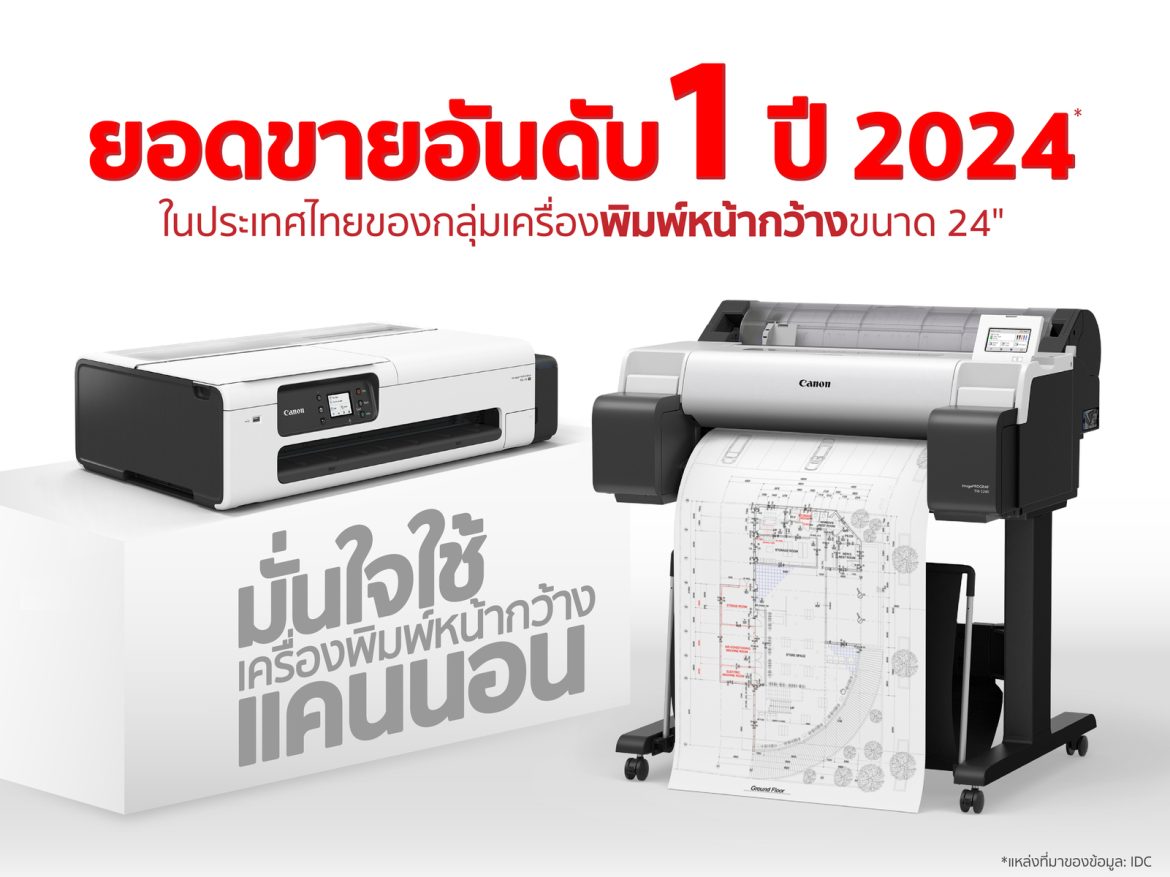 ข้อมูลจาก International Data Corporation (IDC) บริษัทวิจัยตลาดระดับโลกซึ่งมีสำนักงานใหญ่ในสหรัฐอเมริกา ระบุว่า กลุ่มผลิตภัณฑ์เครื่องพิมพ์หน้ากว้าง (Aqueous Large Format Inkjet Printer) ของแคนนอน สามารถครองส่วนแบ่งการตลาดในประเทศไทยปี 2567 ได้เป็นอันดับ 1 ครบทั้ง 3 กลุ่มการพิมพ์เป็นครั้งแรก ทั้ง TTL MaSH 39% (+5pt), Graphic MaSH 42%(+5pt), และ CAD/Poster MaSH 39% (+5pt) เมื่อเปรียบเทียบกับส่วนแบ่งการตลาดของแบรนด์ในปี 2566