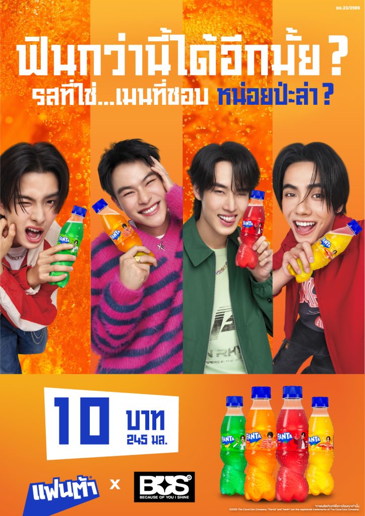 สำหรับแพ็กเกจสุดปังรับต้นปี “แฟนต้า” แท็กทีม BUS because of you i shine รวมเอา 12 เมมเบอร์ของ BUS because of you i shine พร้อมจับคู่เมมเบอร์แต่ละคนมาอยู่บนฉลาก “แฟนต้า” หลากหลายรสชาติและขนาดบรรจุภัณฑ์ ที่วางจำหน่ายครอบคลุมหลายช่องทางทั่วประเทศ ให้แฟน ๆ อร่อยได้ไม่ซ้ำ และสะสมฉลากคอลเลกชันพิเศษกันให้ครบทุกแบบ ดื่มรสไหนก็ไชน์ไปกับเมมเบอร์ที่ใช่ เปลี่ยนทุกขวดให้กลายเป็นไอเทมสุดพิเศษที่สะท้อนตัวตนและแพสชันของ Gen Z อย่างแท้จริง ตอกย้ำการเป็นแบรนด์ที่เชื่อมโยงไปกับไลฟ์สไตล์และความชื่นชอบของคนรุ่นใหม่ได้อย่างลงตัว