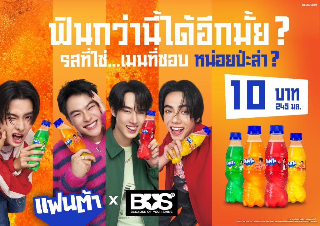 “แฟนต้า” โดย กลุ่มธุรกิจโคคา-โคล่า ในประเทศไทย อันประกอบไปด้วย บริษัท โคคา-โคล่า (ประเทศไทย) จำกัด บริษัท ไทยน้ำทิพย์ คอร์ปอเรชั่น จำกัด (มหาชน) และบริษัท หาดทิพย์ จำกัด (มหาชน) เดินหน้าสร้างปรากฏการณ์ความฟินรับต้นปี จับมือ “BUS because of you i shine” ชวนเหล่า Gen Z ดื่มด่ำไปกับโมเมนต์ความสนุกที่ใช่กับ แพ็กลายพิเศษสะสม 12 แบบ ใหม่ล่าสุดที่มาพร้อมกับรสชาติยอดนิยมอันเป็นเอกลักษณ์ทั้ง กลิ่นสตรอว์เบอร์รี่, ส้ม, ฟรุตพันช์, องุ่นป๊อบ และลิ้นจี่ ให้แฟน ๆ ได้สะสมเมมเบอร์ที่ชื่นชอบจาก BUS because of you i shine ในคอนเซ็ปต์ “ฟินกว่านี้ได้อีกมั้ย” เมื่อรสที่ใช่ มาเจอเมนที่ชอบ และเมื่อความอร่อยของ “แฟนต้า” มาเจอกับบัส จะมีอะไรที่ฟินไปได้มากกว่านี้อีก! และพิเศษยิ่งขึ้นกับ “แฟนต้า” แพ็คราคา 10 บาท ความคุ้มค่าที่พกพาง่าย สนุกได้ทุกที่ทุกเวลา พร้อมเปิดตัว ใหม่! “แฟนต้า” กลิ่นสับปะรด สับเวอร์กว่านี้ได้อีกมั้ย รสชาติหอมสดชื่น ซ่าถึงใจ รับลมร้อนซัมเมอร์นี้ ตอกย้ำคาแรกเตอร์ของ “แฟนต้า” ที่เติมสีสัน ความสนุกให้ทุกวันของชีวิต ด้วยความอร่อย ไม่ซ้ำใคร ที่อะไรก็ยั้งไม่อยู่ พร้อมกิจกรรมแน่น ๆ ให้เหล่า Gen Z ตัวจริงมาร่วมปล่อยพลังและความคิดสร้างสรรค์ แบบจัดเต็มตลอดทั้งแคมเปญ