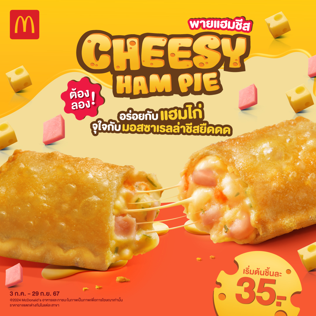 แมคโดนัลด์ ส่งเมนูมัดใจมัทฉะเลิฟเวอร์ ด้วยเมนูสุดฮิต “มัทฉะ แมคเฟลอร์รี” ไอศกรีมซอฟท์เสิร์ฟ ปั่นกับผงมัทฉะ อร่อย เข้มข้น เต็มรสมัทฉะแท้จากญี่ปุ่น และโอริโอครัมป์กรุบๆ ราคาเริ่มต้นเพียงถ้วยละ 49 บาท พร้อมความฟินขั้นสุดที่สายชีสต้องร้องว้าวกับ “ชีสซี่แฮมพาย” พายกรอบร้อนๆ ไส้แฮมไก่แน่นๆ ผสมมอสซาเรลล่าชีสยืด อร่อย หอม มัน ลงตัว เริ่มต้นเพียงชิ้นละ 35 บาท