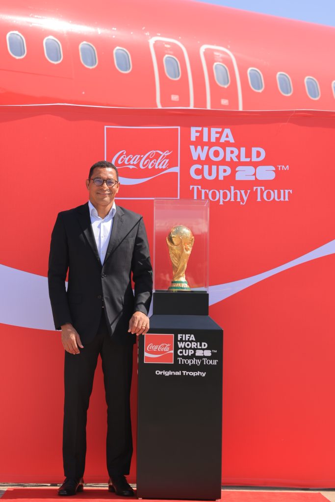 พิธีต้อนรับถ้วยฟุตบอลโลกได้รับเกียรติจาก เซลแมน คาเรกา (ที่ 4 จากซ้าย) ประธานภูมิภาคอาเซียนและแปซิฟิกตอนใต้ เดอะ โคคา-โคล่า คัมปะนี และ จิลแบร์โต ซิลวา(Gilberto Silva) (ที่ 5 จากซ้าย) ตำนานนักเตะฟุตบอลโลกจากบราซิล ผู้เคยคว้าแชมป์ฟุตบอลโลกปี 2002 ซึ่งมาร่วมต้อนรับและถ่ายภาพกับถ้วย FIFA World Cup Trophy ของจริง ซึ่งทำจากทองคำ 18 กะรัต