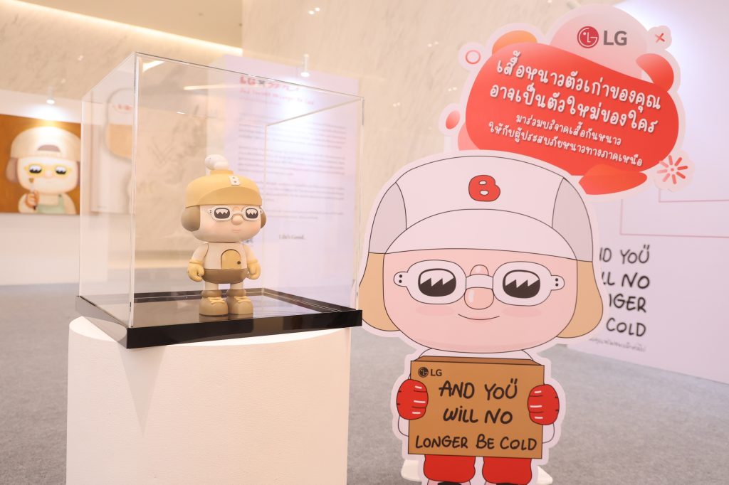 เพื่อส่งต่อความอบอุ่นให้ฤดูหนาวเป็นฤดูที่ยังยิ้มได้สำหรับผู้ขาดแคลนเสื้อกันหนาวในพื้นที่ภาคเหนือ แอลจีจึงจัดแคมเปญอบอุ่นๆ อย่าง “And You Will No Longer Be Cold #แล้วคุณจะไม่หนาวอีกต่อไป” ชวนกันมาบริจาคเสื้อกันหนาวสภาพดี พร้อมทำความสะอาดทั้งซักและอบผ้าด้วยบริการจากร้านสะดวกซัก LG Laundry Crew ให้ ก่อนนำเสื้อกันหนาวไปส่งมอบให้กับกลุ่มผู้ยากไร้ในพื้นที่ภาคเหนือผ่านความร่วมมือกับมูลนิธิกระจกเงา โดยตั้งเป้าส่งต่อความอบอุ่นผ่านเสื้อกันหนาวจำนวน 1,000 ตัวในเดือนธันวาคมนี้ พร้อมชวนให้ผู้บริจาคเขียนข้อความอบอุ่นหัวใจส่งต่อพลังบวกให้กับผู้ที่จะได้รับเสื้อกันหนาวตัวใหม่ ไม่เพียงเท่านี้ ความพิเศษอีกอย่างของแคมเปญนี้คือการจัดงานนิทรรศการศิลปะ LG x STUPIDNOOBMACC “And You Will No Longer Be Cold #แล้วคุณจะไม่หนาวอีกต่อไป” ที่แอลจีชวน ‘STUPIDNOOBMACC’ ศิลปินเจ้าของคาแรกเตอร์แนวสตรีทอย่าง BABYBOY มาร่วมกันสร้างสรรค์ผลงานศิลปะเพื่อสื่อถึงการส่งต่อความอบอุ่น และเชิญชวนมาเข้าร่วมแคมเปญบริจาคเสื้อกันหนาวในแบบที่สนุกและมีสีสันมากยิ่งขึ้น