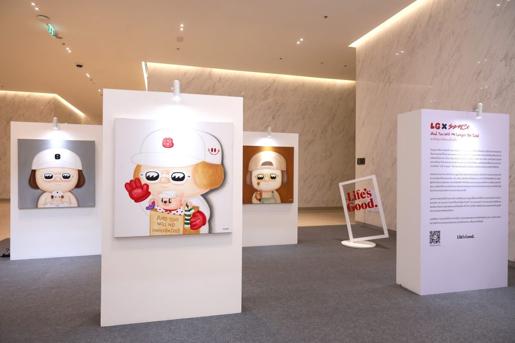 สำหรับนิทรรศการ LG x STUPIDNOOBMACC “And You Will No Longer Be Cold #แล้วคุณจะไม่หนาวอีกต่อไป” ประกอบด้วยผลงานภาพวาดสีอะคริลิกจำนวน 7 ภาพ และยังมีโมเดล Sculpture คาแรกเตอร์ BABYBOY HOME มาตั้งโชว์ภายในงานอีกด้วย