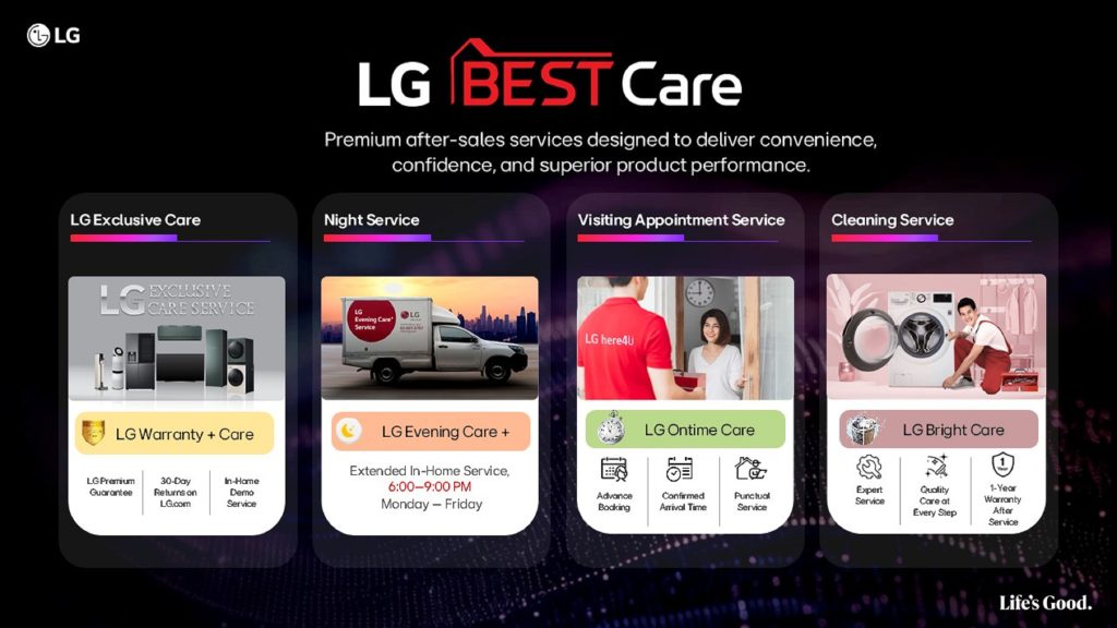 ความมุ่งมั่นในการปฏิรูปธุรกิจครั้งนี้ตั้งอยู่บนรากฐานที่มั่นคง โดยในปี 2568 ที่ผ่านมา ซึ่งเป็นปีที่ 37 ของแอลจีในประเทศไทย บริษัทมีผลประกอบการเติบโตขึ้นกว่า 7% สะท้อนถึงความเชื่อมั่นที่ที่ผู้บริโภคชาวไทยมีต่อแอลจีในฐานะผู้นำนวัตกรรมเครื่องใช้ไฟฟ้าสัญชาติเกาหลีระดับโลกที่น่าเชื่อถือเสมอมา และเพื่อต่อยอดความไว้วางใจพร้อมมอบประสบการณ์ที่สมบูรณ์แบบ แอลจีจึงเตรียมยกระดับบริการหลังการขาย ‘LG Best Care’ ให้ครอบคลุมยิ่งขึ้น ทั้งการดูแลที่ผู้บริโภคสามารถเข้าถึงทุกความต้องการได้ทุกเวลา บริการที่ตรงต่อเวลา และการทำความสะอาดโดยผู้เชี่ยวชาญ เพื่อรักษาประสิทธิภาพสูงสุดของผลิตภัณฑ์ ซึ่งเป็นอีกหนึ่งปัจจัยสำคัญในการสร้างความแตกต่างและมอบความอุ่นใจให้แก่ผู้ใช้งานในระยะยาว