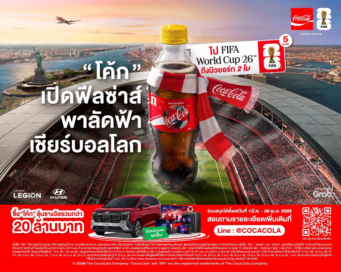ซัมเมอร์นี้จะซ่าและตื่นเต้นกว่าที่เคย เมื่อ กลุ่มธุรกิจโคคา-โคล่า ในประเทศไทย อันประกอบไปด้วย บริษัท ไทยน้ำทิพย์ คอร์ปอเรชั่น จำกัด (มหาชน) บริษัท หาดทิพย์ จำกัด (มหาชน) และบริษัท โคคา-โคล่า (ประเทศไทย) จำกัด เสิร์ฟโปรโมชั่นสุดยิ่งใหญ่รับหน้าร้อนกับแคมเปญ “โค้ก” เปิดฟีลซ่าส์ พาลัดฟ้าเชียร์ FIFA World Cup™ พร้อมสานฝันแฟนบอลชาวไทยให้กลายเป็นจริง ด้วยการมอบประสบการณ์ระดับเวิลด์คลาสแบบ “ครั้งหนึ่งในชีวิต” พาผู้โชคดีบินลัดฟ้าไปชมการแข่งขันฟุตบอลโลก FIFA World Cup 2026™ ถึงมหานครนิวยอร์ก สหรัฐอเมริกา พร้อมจัดเต็มของรางวัล ทั้งส่วนลดรายวัน รางวัลประจำสัปดาห์ และรางวัลใหญ่ท้ายแคมเปญอย่างรถยนต์และอุปกรณ์เกมมิ่งระดับไฮเอนด์ รวมมูลค่ากว่า 20 ล้านบาท! ร่วมสนุกได้ตั้งแต่วันนี้จนถึงวันที่ 26 เมษายน 2569