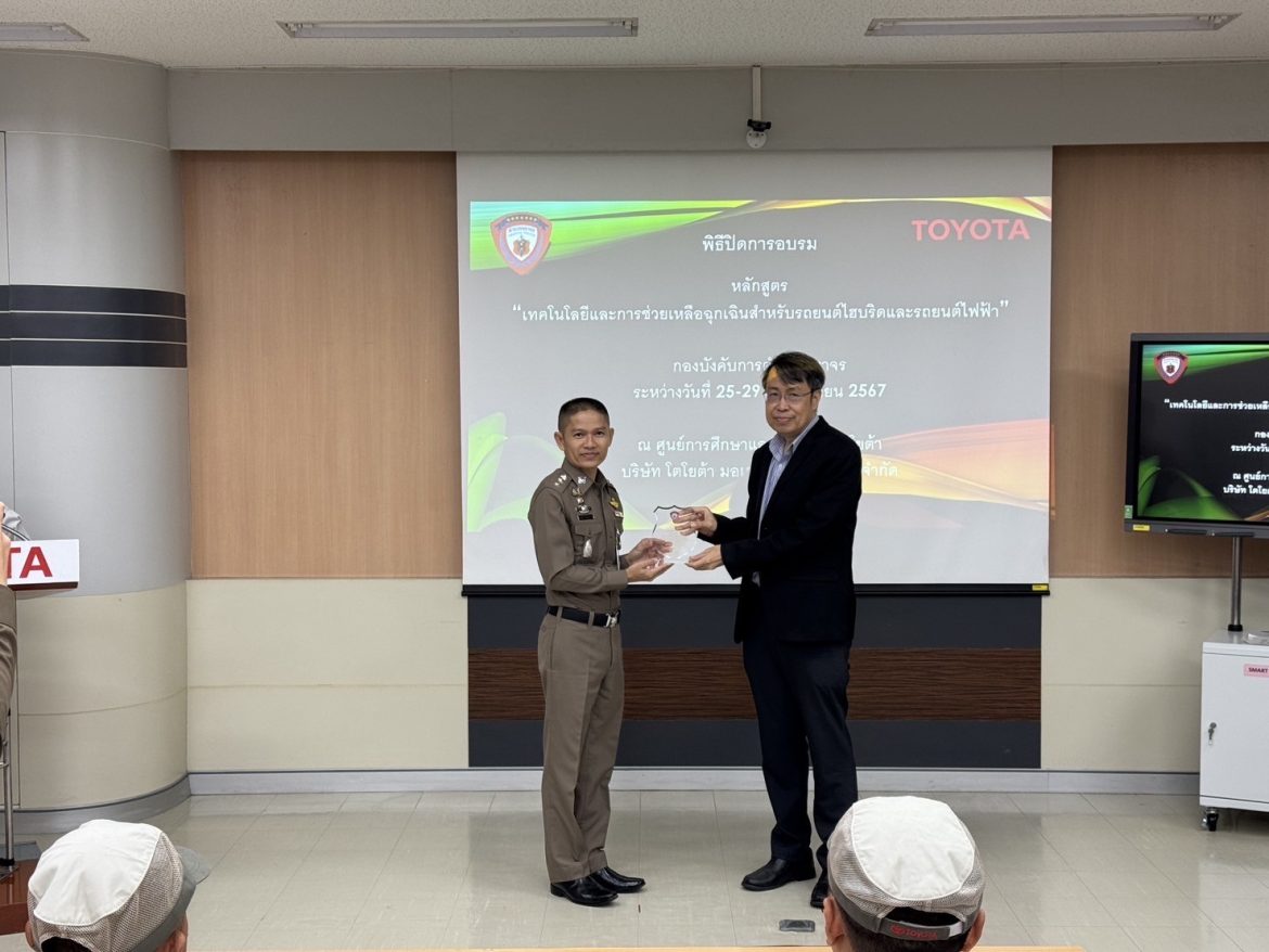บริษัท โตโยต้า มอเตอร์ ประเทศไทย จำกัด โดยศูนย์การศึกษาและฝึกอบรมโตโยต้า ได้จัดการอบรมหลักสูตร เทคโนโลยีและการช่วยเหลือฉุกเฉินสำหรับรถยนต์ไฮบริดและรถยนต์ไฟฟ้าระหว่างวันที่ 25-29พฤศจิกายน 2567 ณ ศูนย์การศึกษาและฝึกอบรมโตโยต้า ให้กับตำรวจจราจรโครงการพระราชดำริ กองกำกับการ 6 กองบังคับการตำรวจจราจร โดยได้รับเกียรติจาก รองผู้บังคับการตำรวจจราจร พันตำรวจเอก จิรกฤต จารุนภัทร์ เข้าร่วมพิธีเปิดการอบรม และผู้กำกับการ 6 กองบังคับการตำรวจจราจร พันตำรวจเอก ประทีป ศรีหรั่งไพโรจน์ ร่วมพิธีมอบเกียรติบัตร