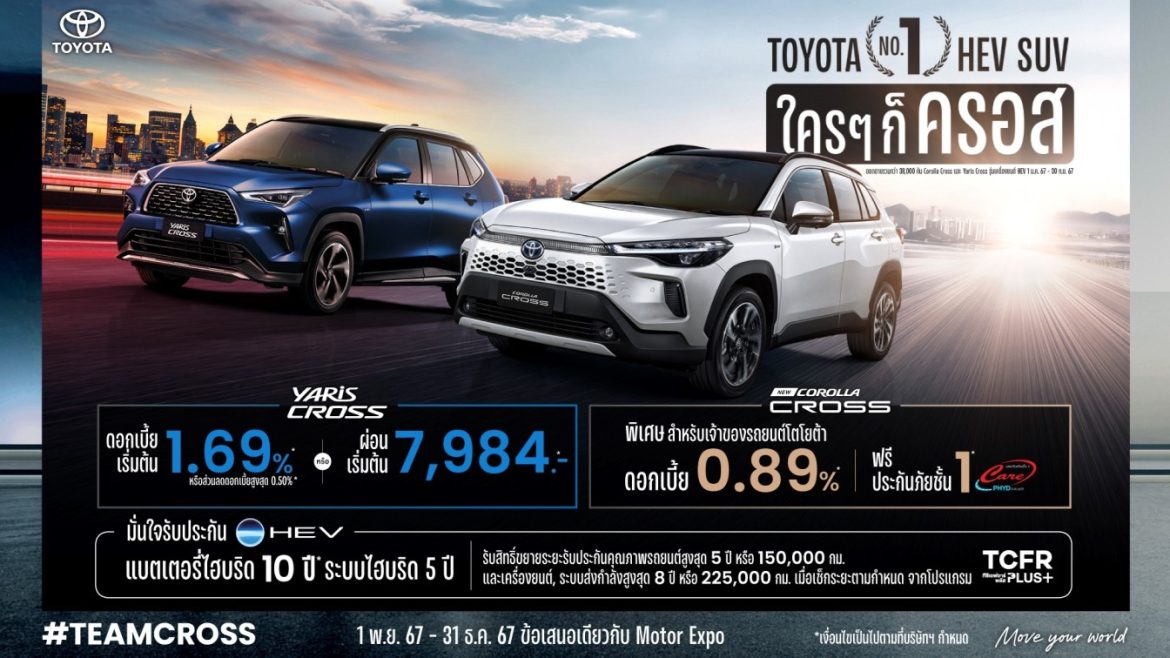 บริษัท โตโยต้า มอเตอร์ ประเทศไทย จำกัด ตอกย้ำความเป็นผู้นำด้านยนตรกรรมไฮบริดภายใต้คอนเซปต์ “TOYOTA TRUSTED HYBRID” กับเทคโนโลยีไฮบริดของโตโยต้าที่สร้างชื่อเสียงและความไว้วางใจในประเทศไทย ผสานระหว่างมอเตอร์ไฟฟ้าและเครื่องยนต์อย่างลงตัว มอบสมรรถนะการขับขี่ยอดเยี่ยม เพิ่มประสิทธิภาพการประหยัดเชื้อเพลิง และเป็นมิตรต่อสิ่งแวดล้อม ที่สำคัญ ยังมอบความสบายใจตลอดการใช้งาน ด้วยบริการหลังการขายที่ได้มาตรฐาน และทีมช่างผู้ชำนาญการด้านระบบไฮบริดของโตโยต้ากว่า 8,000 คน ที่ผ่านการฝึกอบรมจากศูนย์การศึกษาและฝึกอบรมโตโยต้า พร้อมอุปกรณ์การซ่อมรถยนต์ไฮบริดที่ได้มาตรฐาน และความพร้อมด้านอะไหล่ ควบคู่ไปกับระบบการจัดเตรียมชิ้นส่วน ที่มีรองรับนานกว่า 15 ปี และสามารถจัดส่งได้ภายใน 48 ชั่วโมง จากเครือข่ายศูนย์บริการที่ได้มาตรฐานและครบวงจรกว่า 450 แห่งทั่วประเทศ ซึ่งนำมาสู่แคมเปญการสื่อสารใหม่ “โตโยต้า No.1 HEV SUV ใครๆ ก็ครอส”