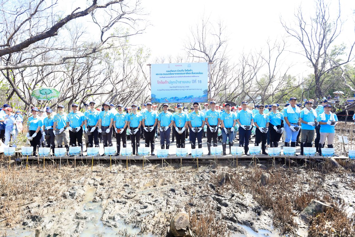 กิจกรรม “โตโยต้า ปลูกป่าชายเลน ครั้งที่ 18” สะท้อนพลังความร่วมมือจากหลากหลายภาคส่วนกว่า 2,000 คน ประกอบด้วย พนักงานโตโยต้าและครอบครัว กลุ่มผู้ผลิตชิ้นส่วน ผู้แทนจำหน่ายโตโยต้า ลูกค้า สมาชิกเครือข่าย Facebook Toyota Happiness Club สมาชิก Toyota Customer Car Club รวมถึงตัวแทนจากหน่วยงานภาครัฐในจังหวัดสมุทรปราการ กองทัพบก และประชาชนทั่วไป ที่มาร่วมกันปลูกพันธุ์ไม้ชายเลนจำนวน 50,000 ต้น ซึ่งตลอดระยะเวลาการดำเนินโครงการ โตโยต้าได้ปลูกป่าชายเลน ในพื้นที่บางปูแล้วกว่า 842,800 ต้น สามารถดูดซับก๊าซคาร์บอนไดออกไซด์ได้กว่า 11,000* ตันต่อปี สะท้อนให้เห็นถึงความมุ่งมั่นในการอนุรักษ์ฟื้นฟูระบบนิเวศอย่างต่อเนื่องและยั่งยืน