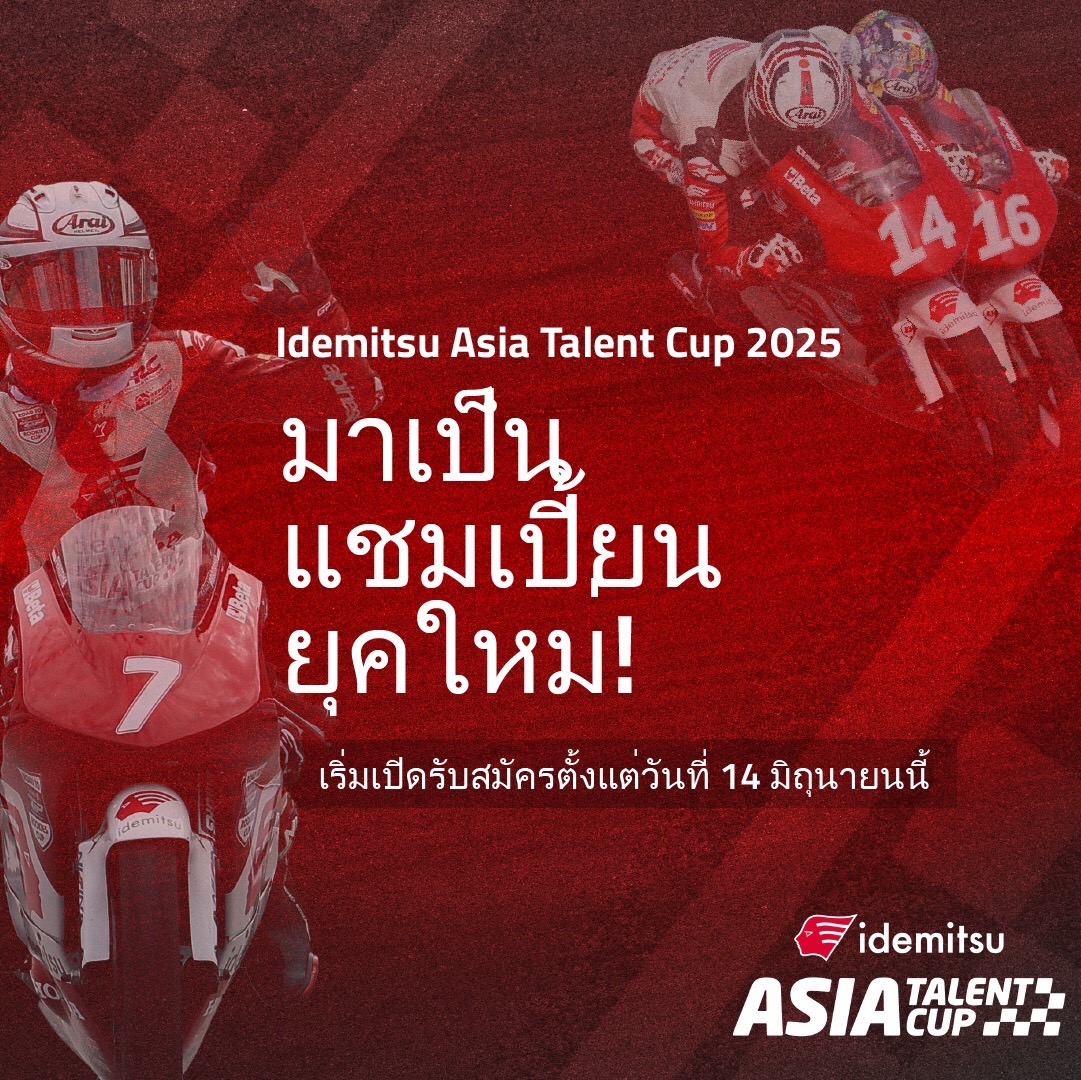 สำหรับเยาวชนที่สนใจเข้าร่วมสมัครคัดเลือกสู่การเป็นนักแข่งในโครงการ “อิเดมิตสึ เอเชีย ทาเลนต์ คัพ 2025” สามารถสมัครเข้าร่วมแข่งขันได้ตั้งแต่วันที่ 14 มิถุนายน  ถึง 14 กรกฎาคม นี้ ซึ่งการจัดทดสอบทักษะจะมีขึ้นที่สนามเซปัง อินเตอร์เนชั่นแนล เซอร์กิต ประเทศมาเลเซีย สามารถอ่านรายละเอียดเพิ่มเติมได้ ที่ https://www.asiatalentcup.com/how-to-apply/