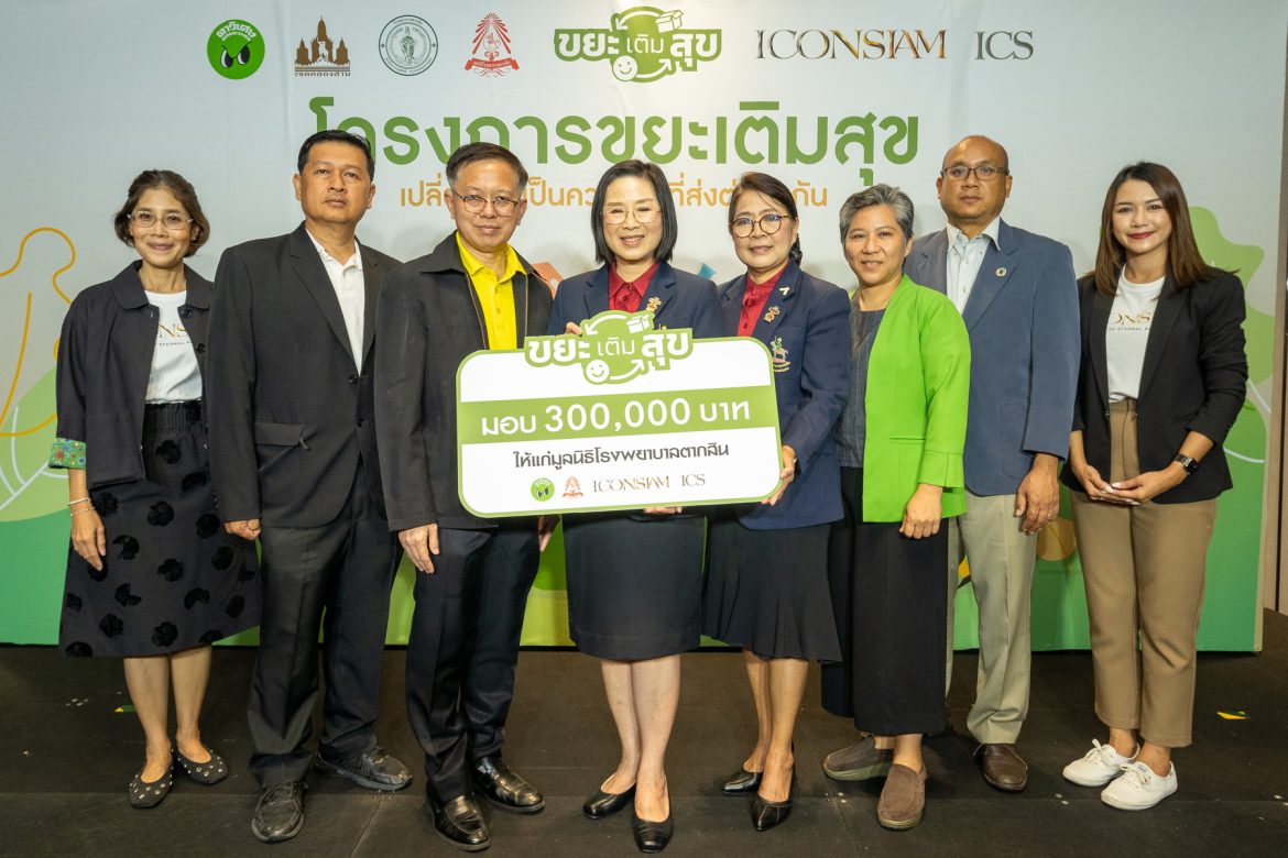 ไอคอนสยาม ตอกย้ำวิสัยทัศน์การดำเนินธุรกิจที่เอื้ออำนวยประโยชน์ให้กับคนจำนวนมาก และต้องการเป็นส่วนสำคัญในการยกระดับคุณภาพชีวิตของคนไทย ภายใต้กลยุทธ์ “ร่วมกันรังสรรค์ (Co-creation) และการสร้างคุณค่าสมประโยชน์ร่วมกันทุกฝ่าย (Creating Shared Values) ผนึกกำลังพันธมิตร สมาคมสร้างสรรค์ไทย (ตาวิเศษ), มูลนิธิแม่ฟ้าหลวง ในพระบรมราชูปถัมภ์, โรงพยาบาลตากสิน และโรงเรียนย่านคลองสาน-ธนบุรี 16 แห่ง จัด “โครงการขยะเติมสุข ปีที่ 3” ตั้งกล่องรับบริจาคขยะรีไซเคิล 30 จุด เปลี่ยนขยะเป็นความสุขส่งต่อถึงกัน ด้วยการนำขยะรีไซเคิลที่รวบรวมได้จากการรับบริจาคขยะเติมสุขไปจำหน่าย เพื่อหารายได้มอบให้มูลนิธิโรงพยาบาลตากสิน สร้างคุณค่าและช่วยเหลือผู้อื่น พร้อมคัดเลือกตัวแทน “เยาวชนต้นแบบทูตรีไซเคิล” จาก 16 โรงเรียนย่านคลองสาน-ธนบุรี เข้าร่วมปฐมนิเทศโครงการขยะเติมสุขและกิจกรรมเวิร์กชอปมากมาย เพื่อปลูกฝังและสร้างจิตสำนึกอย่างยั่งยืนในการแยกขยะให้กับเยาวชนผ่านองค์ความรู้ต่างๆ ที่สร้างสรรค์และเข้าใจง่าย โดยผลจากการจัด “โครงการขยะเติมสุข ปีที่ 3” ในปี 2567 สามารถรวบรวมขยะได้ 17,800 กิโลกรัม หรือ 17.8 ตัน จากการตั้งกล่องรับขยะเติมสุข 30 จุด สมทบทุนจัดซื้ออุปกรณ์จัดซื้ออุปกรณ์ทางการแพทย์และปรับปรุงห้องกายภาพบำบัดผู้ป่วยอัมพาตจากโรคหลอดเลือดสมองให้กับมูลนิธิโรงพยาบาลตากสินรวมจำนวนเงิน 300,000 บาท โดยปริมาณขยะ 17,800 กิโลกรัม สามารถช่วยลดการปล่อยก๊าซคาร์บอนไดออกไซด์ได้ประมาณ 64,103 กิโลกรัม เทียบเท่าการปลูกต้นไม้เพื่อดูดซับก๊าซ CO2 ได้ถึง 6,747 ต้น