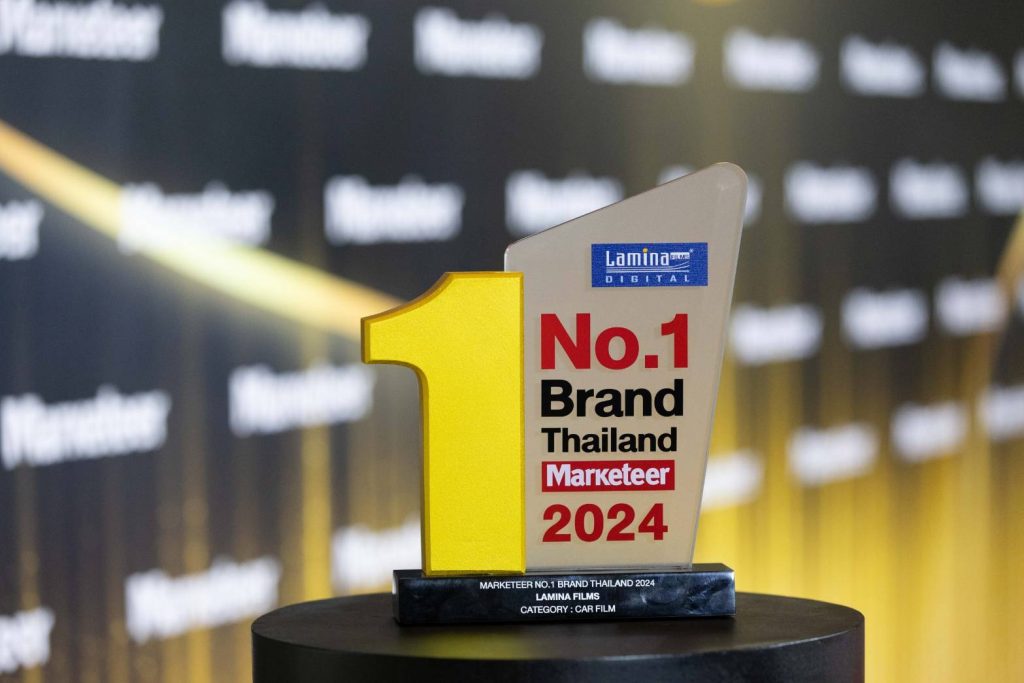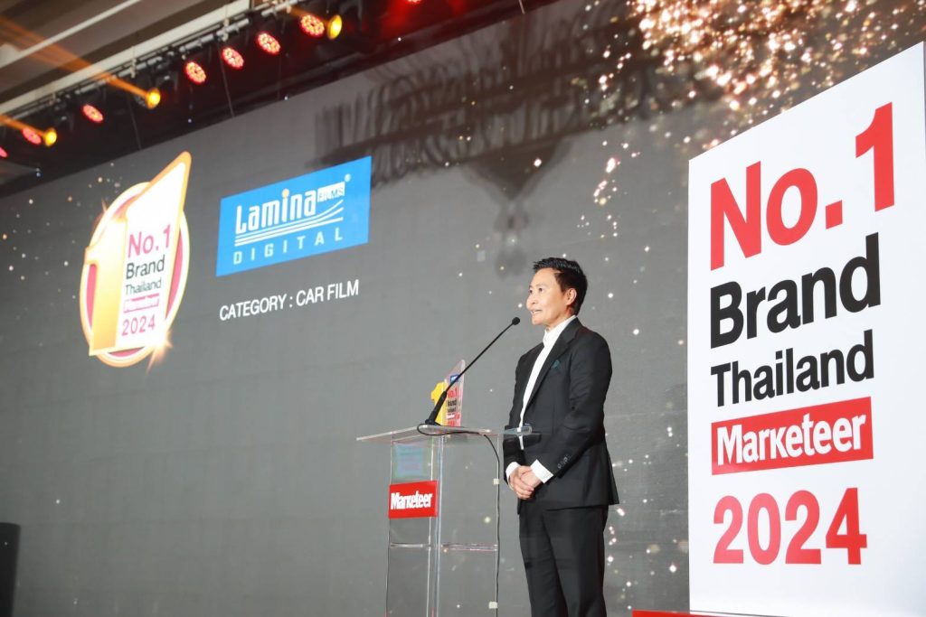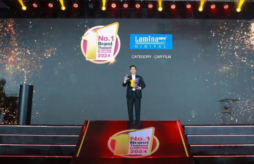 “ลามิน่าฟิล์ม” ตอกย้ำความเป็นผู้นำฟิล์มกรองแสงรถยนต์และอาคาร คว้ารางวัลแบรนด์ยอดนิยมอันดับ 1 ของประเทศไทย ประจำปี 2567 หรือ Marketeer No.1 Brand Thailand 2024 ต่อเนื่องปีที่ 9 ตอกย้ำความแข็งแกร่งของลามิน่าที่หนึ่งในใจผู้บริโภค จัดโดยมาร์เก็ตเธียร์ กรุ๊ป ร่วมกับ บริษัท มาร์เก็ตติ้ง มูฟ จำกัด