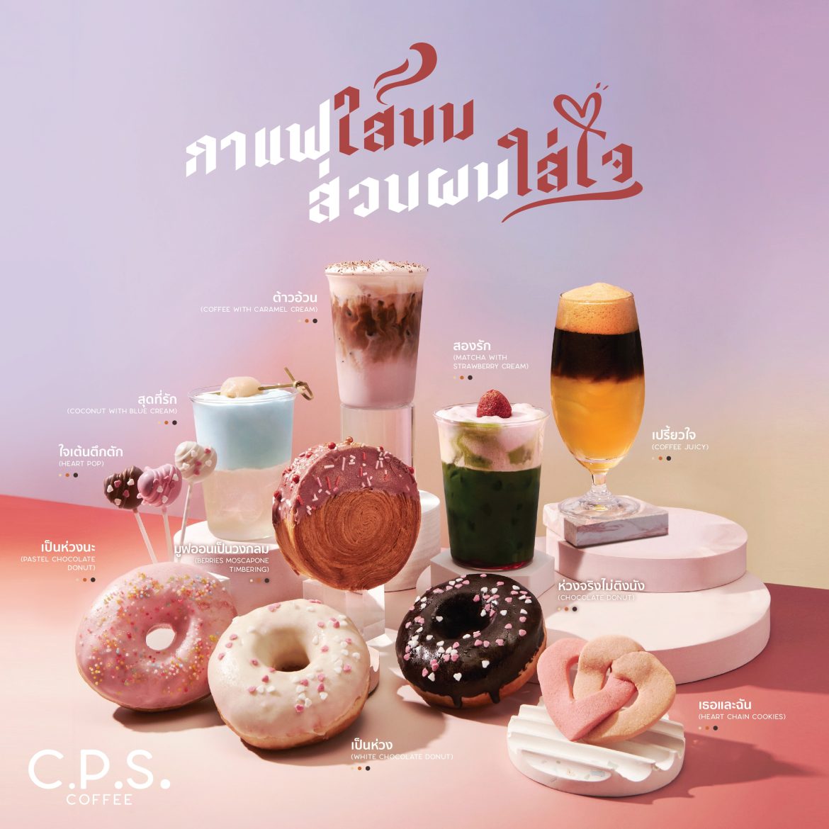 C.P.S. COFFEE (ซีพีเอส คอฟฟี่) คาเฟ่สไตล์ Specialty Coffee & Lifestyle Bar ที่รังสรรค์ขึ้นด้วยแนวคิดส่วนผสมที่ลงตัวของ COFFEE, PASSION และ SPECIALTY ต้อนรับเทศกาลวาเลนไทน์ พร้อมเสิร์ฟความสุขมอบรอยยิ้มให้กับทุกคนในเดือนแห่งความรัก โดยออกแบบไอเดียเมนูสุดสเปเชี่ยลที่มีความสนุกสนานไปกับหลากหลายชื่อเมนูเครื่องดื่มและขนม ผ่านการเล่นคำในเมนูให้เข้ากับบรรยากาศ และสร้างรอยยิ้มได้ทุกครั้งเวลาสั่ง ให้ทุกคนสัมผัสได้ถึงความใส่ใจ และความรักหลากหลายรูปแบบ เติมเต็มช่วงเวลาแห่งความรักในช่วงเทศกาลวาเลนไทน์นี้