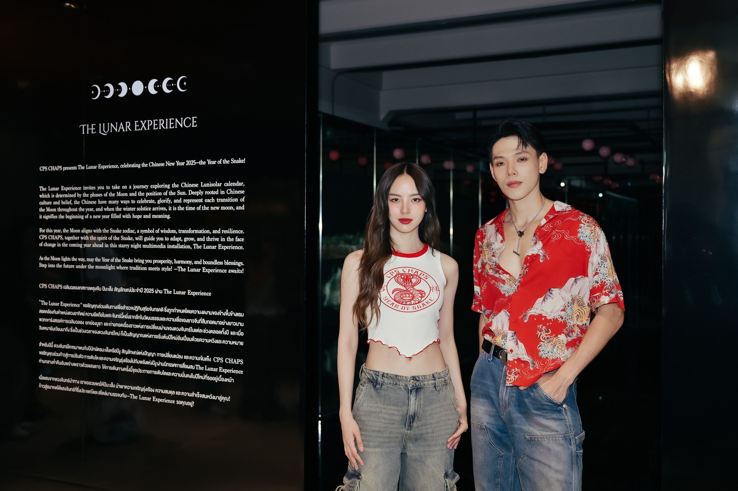 โดยภายในงานได้รับเกียรติจาก 2 แฟชั่นไอคอนิก ณิชา – ณัฏฐณิชา ดังวัธนาวณิชย์ นักแสดงสาวสวย และ ต้าร์อู๋ – พิทยา แซ่ฉั่ว ศิลปินและนักแสดงดาวรุ่ง ที่มาถ่ายทอดสไตล์ความเท่ตามฉบับของ CPS CHAPS จากคอลเลกชั่น “Lunar Luxe” ที่มีดีไซน์ผสานกันของกราฟฟิกลวดลายงู ดอกไม้จีน ในโทนสีความหมายมงคลอย่างสีแดง สีดำ สีขาว และสีทองได้อย่างลงตัว