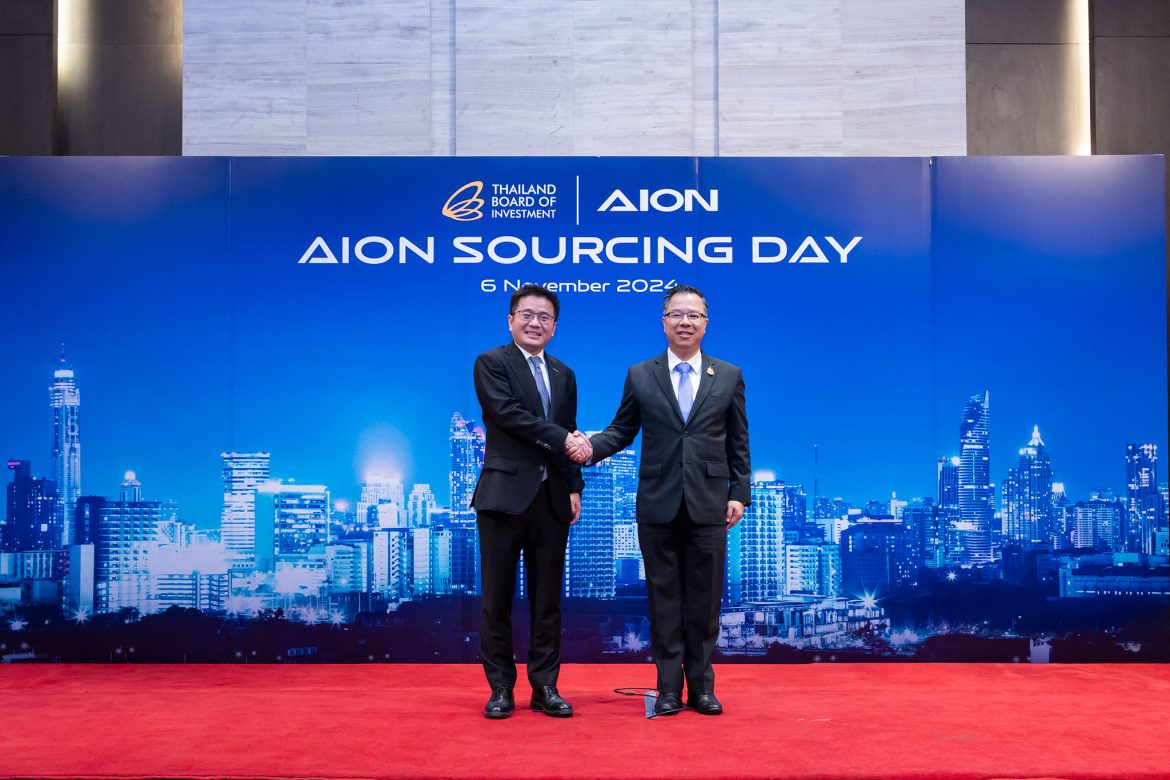 GAC AION ผู้ผลิตรถยนต์ไฟฟ้ายักษ์ใหญ่จากจีน จับมือกับ BOI เฟ้นหาผู้ผลิตชิ้นส่วนในไทยผ่านการเจรจาธุรกิจในงาน “AION Sourcing Day” รองรับการเดินเครื่องผลิตรถยนต์ EV ในปี 2568 ยกระดับไทยสู่ศูนย์กลางการผลิตยานยนต์ไฟฟ้าครบวงจรในอาเซียน เผยยอดเจรจาธุรกิจ 74 บริษัท คาดเกิดมูลค่าซื้อขายชิ้นส่วนในประเทศเพิ่มอีกกว่า 2,250 ล้านบาท