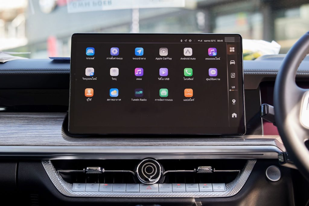 - ความพรีเมียมและความสะดวกสบายเหนือกว่ารถกระบะในเซ็กเมนต์เดียวกัน: ภายในห้องโดยสารถูกออกแบบให้กว้าง พรีเมียม และใช้งานง่าย ด้วยโทนภายในสีดำเสริมความรู้สึกพรีเมียมตั้งแต่แรกสัมผัส เบาะหลังปรับเอนได้ 2 ระดับ (ประมาณ 33 องศา) ให้นั่งสบายขึ้นทุกระยะทาง พร้อมพนักพิงเบาะพับได้แบบ 40:20:40 ที่มาพร้อมที่พักแขนและที่วางแก้ว รองรับทั้งการโดยสารและการขนของได้อย่างลงตัว วัสดุหุ้มเบาะหนังสังเคราะห์พรีเมียม นั่งสบายทั้งด้านหน้าและด้านหลัง เหมาะทั้งวันทำงานและทริปครอบครัว มอบประสบการณ์ขั้นกว่าด้วยหน้าจอมัลติมีเดียแบบสัมผัสขนาด 12.3 นิ้ว (ในรุ่น 2.4T PRO) และขนาด 14.6 นิ้ว (ในรุ่น 2.4T ULTRA และ 2.4T ULTRA 4WD) เกียร์ควบคุมด้วยระบบไฟฟ้า Electronic Shifter บริเวณคอนโซลกลาง เสริมความสะดวกสบายด้วย Smart Key และ Push Start ระบบปรับอากาศอัตโนมัติแยกอิสระซ้าย-ขวา และระบบล็อกประตูอัตโนมัติเมื่อถึงความเร็วที่กำหนด เบาะคนขับสามารถปรับไฟฟ้าได้ 6 ทิศทาง และเบาะผู้โดยสารด้านหน้าปรับแบบไฟฟ้าได้ 4 ทิศทาง พร้อมรองรับไลฟ์สไตล์การทำงานยุคใหม่ด้วยพอร์ต USB หน้า-หลัง (มีช่องต่อสำหรับกล้องบันทึกภาพแยกต่างหาก) และช่องจ่ายไฟสำรอง 220V ในรถ พร้อมที่ชาร์จโทรศัพท์แบบไร้สาย มอบความสะดวกสบายแบบเต็มพิกัด ทำให้ทุกการเดินทางด้วยรถกระบะ ไม่เหมือนเดิมอีกต่อไป