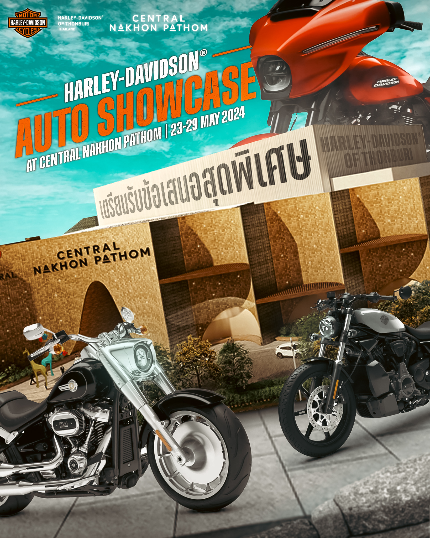 IA นำมอเตอร์ไซค์ 3 รุ่น ยอดนิยม คือ ALL-NEW STREET GLIDE ปี 2024, FAT BOY และ NIGHTSTER มาจัดแสดงพร้อมจำหน่าย ภายในงาน AUTO SHOWCASE มหกรรมยานยนต์เพื่อชาวนครปฐม พร้อมหยิบยื่นข้อเสนอสุดพิเศษมากมาย ระหว่างวันที่ 23-29 พฤษภาคม 2567 ณ เซ็นทรัล นครปฐม