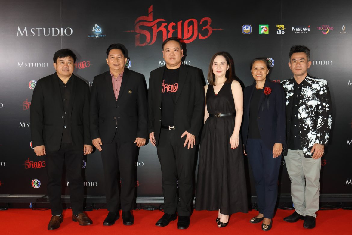 “M Studio และ ช่อง 3” จัดงานกาล่าภาพยนตร์ “ธี่หยด 3” อย่างยิ่งใหญ่ โดยได้รับเกียรติจากคณะผู้บริหารและพันธมิตรทางธุรกิจเข้าร่วมงานอย่างคับคั่ง นำโดย คุณสุรเชษฐ์ อัศวเรืองอนันต์ ประธานเจ้าหน้าที่บริหาร M Studio, คุณเทรซีแอนน์ มาลีนนท์ ผู้ช่วยประธานเจ้าหน้าที่ปฏิบัติการกลุ่ม บมจ.บีอีซี เวิลด์, พร้อมด้วย คุณบุญชัย อัศวฤทธิพรหม์ รองประธานบริหารอาวุโสฝ่ายการขาย-ช่องทางร้านค้าปลีกดั้งเดิมและร้านอาหาร บริษัท ซันโทรี่ เป๊ปซี่โค เบเวอเรจ ประเทศไทย จำกัด, คุณไพศาล หงษ์ทอง รองผู้จัดการธนาคารเพื่อการเกษตรและสหกรณ์การเกษตร (ธ.ก.ส.), คุณเด่นเดือน เหลืองเช็ง ผู้อำนวยการฝ่ายโฆษณาและประชาสัมพันธ์ การท่องเที่ยวแห่งประเทศไทย (ททท.) และ คุณปิยากร ชินะรัตนกุลCGS Brand Management and Marketing Communications Director บริษัท ผลิตภัณฑ์และวัตถุก่อสร้าง จำกัด ร่วมถ่ายภาพแสดงพลังความร่วมมือและการสนับสนุนภาพยนตร์ธี่หยด 3 ณ The Pinnacle Hall ชั้น 8 ไอคอนสยาม เมื่อวันก่อน