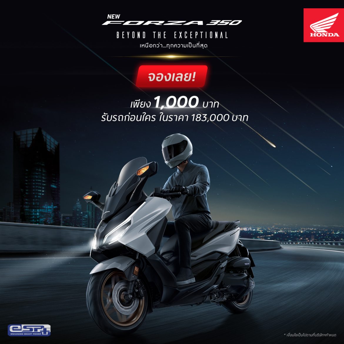 หลังจากที่ไทยฮอนด้าเปิดตัว ‘New Honda FORZA350’ รถจักรยานยนต์พรีเมียมสปอร์ตรุ่นใหม่ ภายใต้คอนเซปต์ ‘BEYOND THE EXCEPTIONAL เหนือกว่า…ทุกความเป็นที่สุด’ ที่นำเสนอเทคโนโลยีสุดล้ำสมัย Honda RoadSync ภายในงาน ‘Thai Honda Move Forward Together: Press Conference 2024’ ที่ผ่านมา พร้อมให้เป็นเจ้าของแล้ววันนี้ โดยเปิดให้จองผ่านช่องทางออนไลน์พร้อมรับรถก่อนใคร ในราคาแนะนำ 183,000 บาท ตั้งแต่วันนี้ ถึง 30 กันยายน 2567