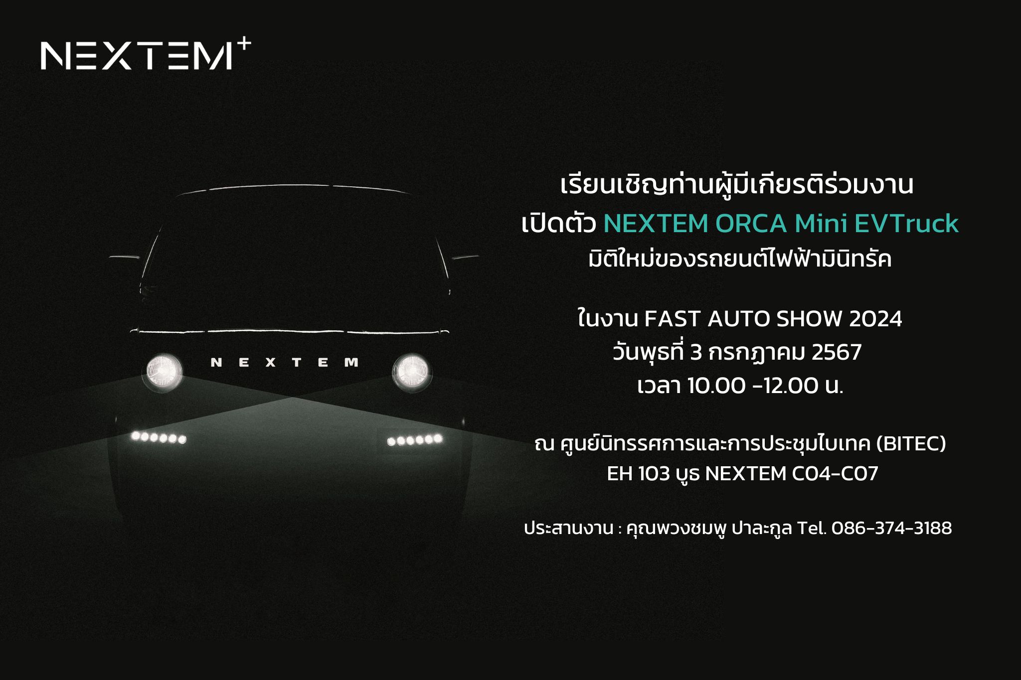 ในวันพุธที่ 3 กรกฎาคม 2567 เวลา 10.30 – 12.00 น. ณ ศูนย์นิทรรศการและการประชุมไบเทค (BITEC) EH 103 บูธ NEXTEM C04 – C07 ประสานงานติดต่อ โทร 086 374 3188