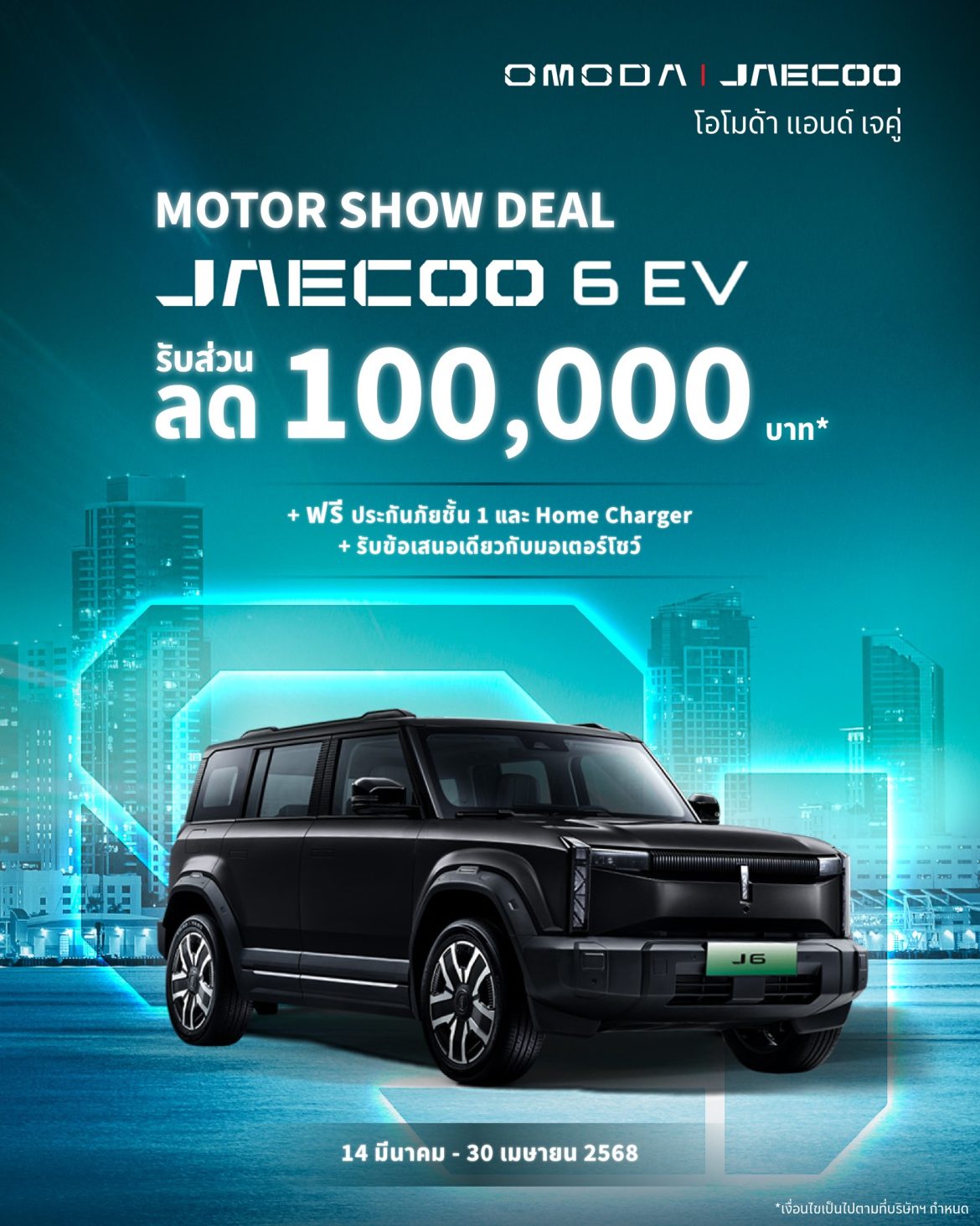 Motor Show Deal กับ JAECOO 6 EV ที่มาพร้อมกับส่วนลด 100,000 บาท*