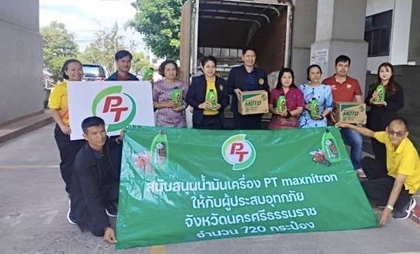 บริษัท พีทีจี เอ็นเนอยี จำกัด (มหาชน) หรือ PTG สนับสนุนโครงการสร้างสุข ฟื้นฟูผู้ประสบอุทกภัยหลังน้ำลดที่จังหวัดนครศรีธรรมราช โดยมอบผลิตภัณฑ์ PT Maxnitron Moto Semi-Synthetic 4T AT น้ำมันเครื่องกึ่งสังเคราะห์ (Semi-Synthetic) สำหรับเปลี่ยนถ่ายน้ำมันเครื่องรถจักรยานยนต์ จำนวน 720 ขวด เพื่อใช้ในการออกหน่วยให้บริการซ่อมให้กับผู้ประสบอุทกภัยที่ได้รับความเสียหายใน 23 อำเภอต่อไป ซึ่งงานดังกล่าวจัดขึ้นเมื่อเร็วๆ นี้