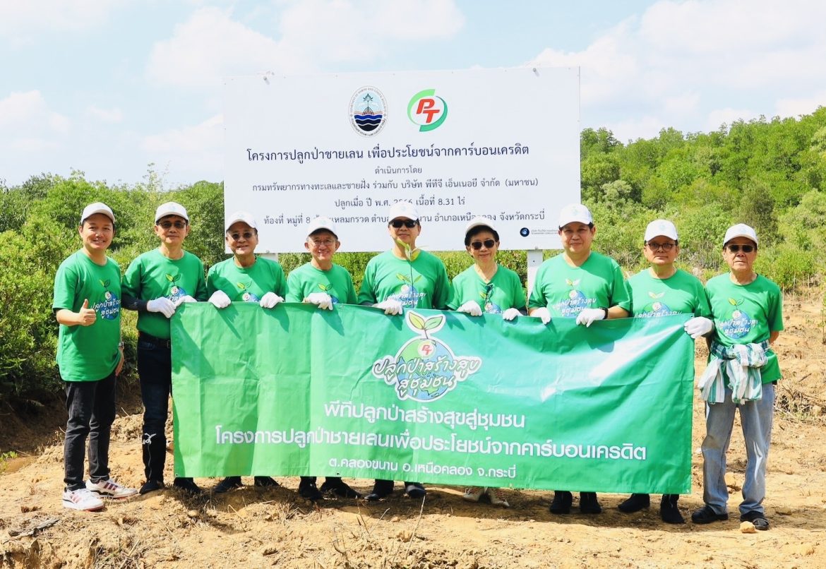นอกจากนี้พีทียังให้ความสำคัญต่อการแก้ไขวิกฤตโลก จังหวัดกระบี่ เป็นระยะเวลา 10 ปี ซึ่งคาดว่าจะสามารถดูดกลับก๊าซเรือนกระจกได้ประมาณ 2,500 ตันคาร์บอนไดออกไซด์เทียบเท่า สนับสนุนเป้าหมายระดับชาติและเป้าหมายการปล่อยก๊าซเรือนกระจกสุทธิเป็นศูนย์ พร้อมเพิ่มพื้นที่สีเขียว ความหลากหลายทางชีวภาพ และส่งเสริมการประกอบอาชีพตามวิถีชุมชนในเขตป่าชายเลนร้อน โดยเล็งเห็นว่าการปลูกป่าชายเลนเป็นหนึ่งในวิธีลดก๊าซเรือนกระจกที่มีประสิทธิภาพ จึงได้ร่วมมือกับกรมทรัพยากรทางทะเลและชายฝั่งดำเนิน โครงการ “พีที ปลูกป่าสร้างสุขสู่ชุมชน” บนพื้นที่กว่า 90 ไร่ ในตำบลคลองขนาน
