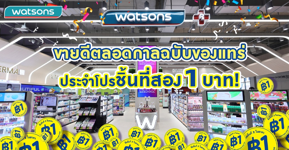 ครั้งนี้ เพื่อต้อนรับการกลับมาของ ‘ชิ้นที่สอง 1 บาท’ วัตสันขอเปิด 3 กลุ่มสินค้าที่ได้รับความนิยมตลอดกาลประจำโปรฯ ‘ชิ้นที่สอง 1 บาท’ เผื่อเป็นไอเดียดีๆให้เหล่านักชอป พร้อมตอกย้ำความเป็นตัวจริง ‘ของแทร่’ ของโปรฯ ตลอดระยะเวลาที่ผ่านมา