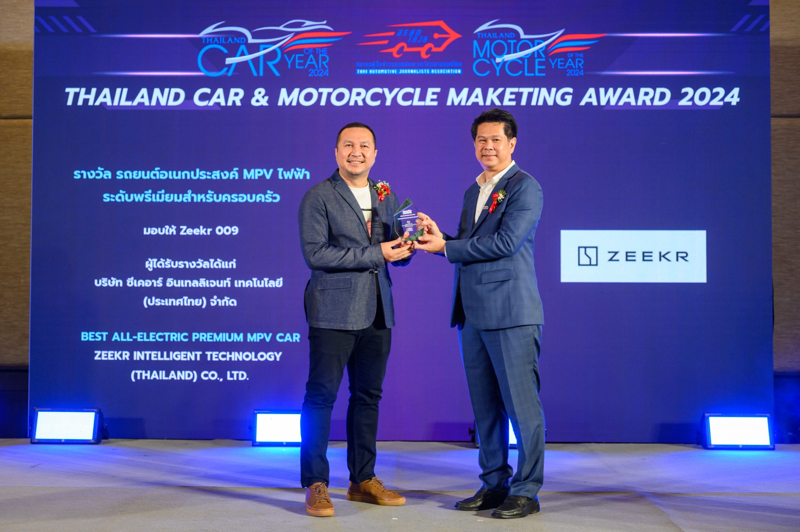 “ZEEKR 009” เอ็มพีวีไฟฟ้าระดับลักชูรี จาก ZEEKR คว้ารางวัล รถยนต์อเนกประสงค์ MPV ไฟฟ้าระดับพรีเมียมสำหรับครอบครัว ในงานประกาศรางวัลรถยนต์ยอดเยี่ยมแห่งปี Thailand Car of the Year 2024 โดยการตัดสินจากคณะกรรมการบริหารสมาคมผู้สื่อข่าวรถยนต์และรถจักรยานยนต์ไทย (สรยท.)